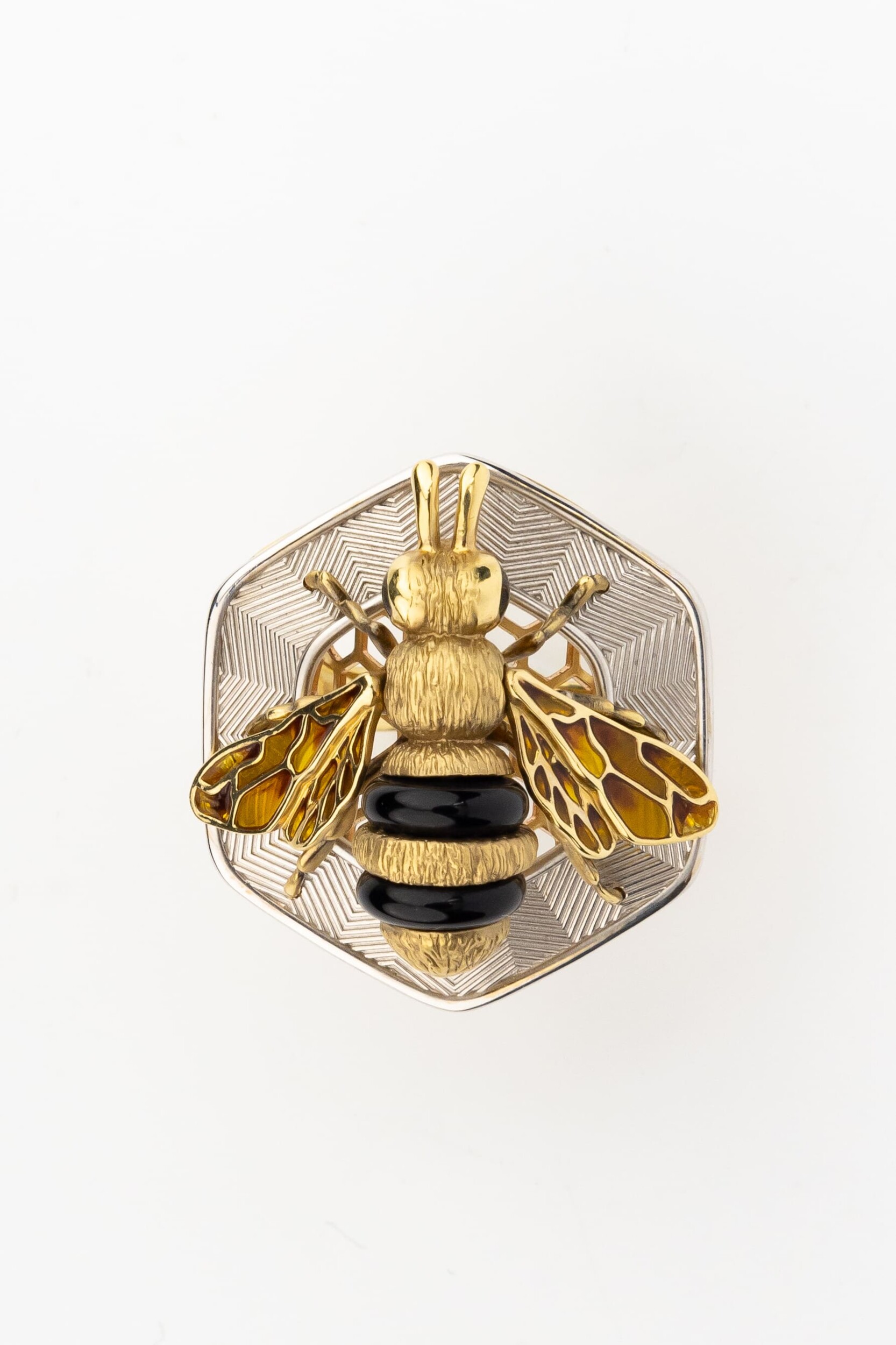 В дизайне модели гармонично сочетаются вставки из черного оникса и цветной эмали, формирующие узнаваемый облик насекомого. Две вставки имеют форму бусины, дополняя композицию акцентными деталями. Это украшение станет идеальным дополнением вашего имиджа, подчеркивая индивидуальность и вкус. Кольцо выполнено в стиле унисекс, поэтому прекрасно подойдет как для женщин, так и для мужчин.