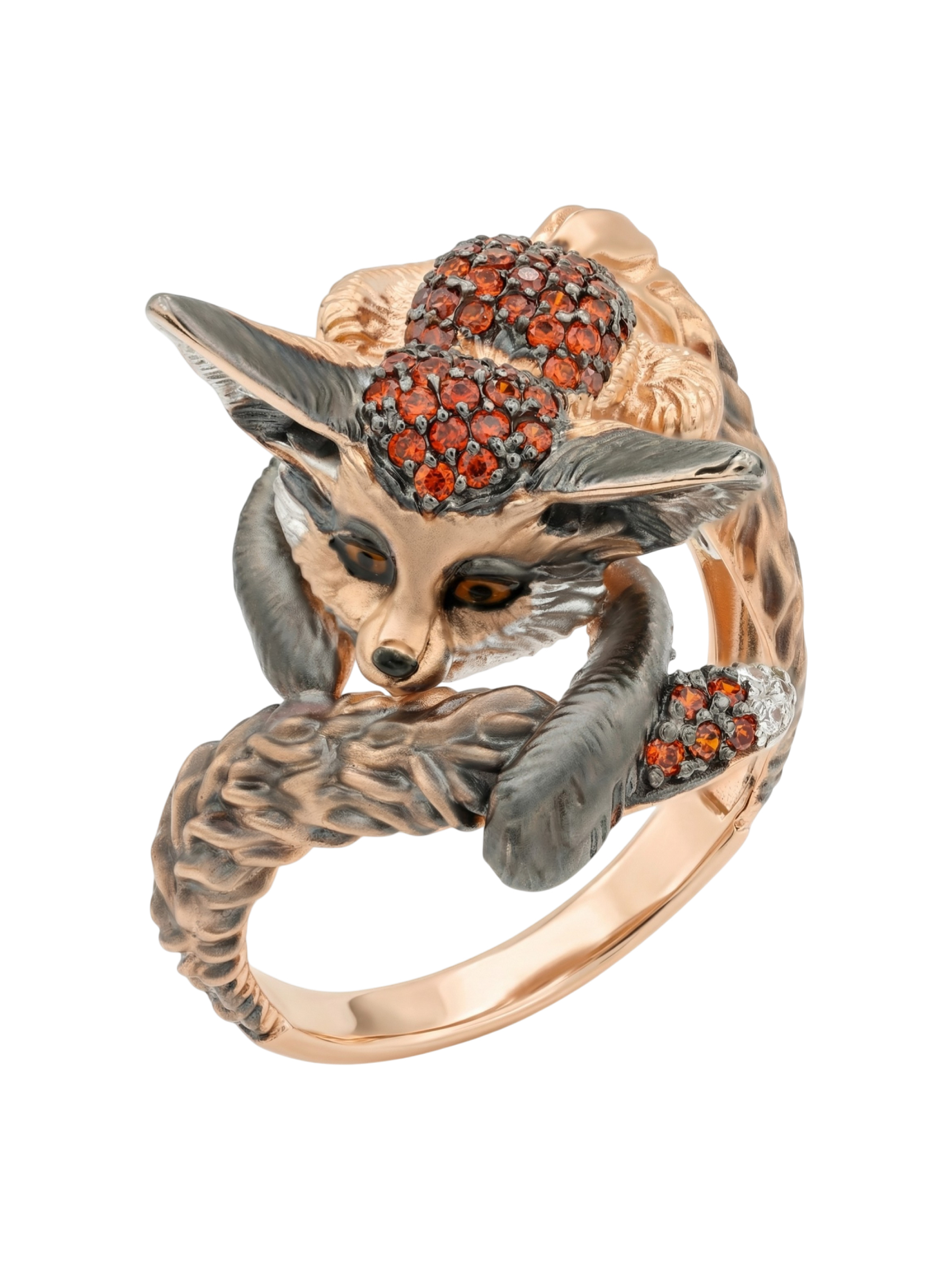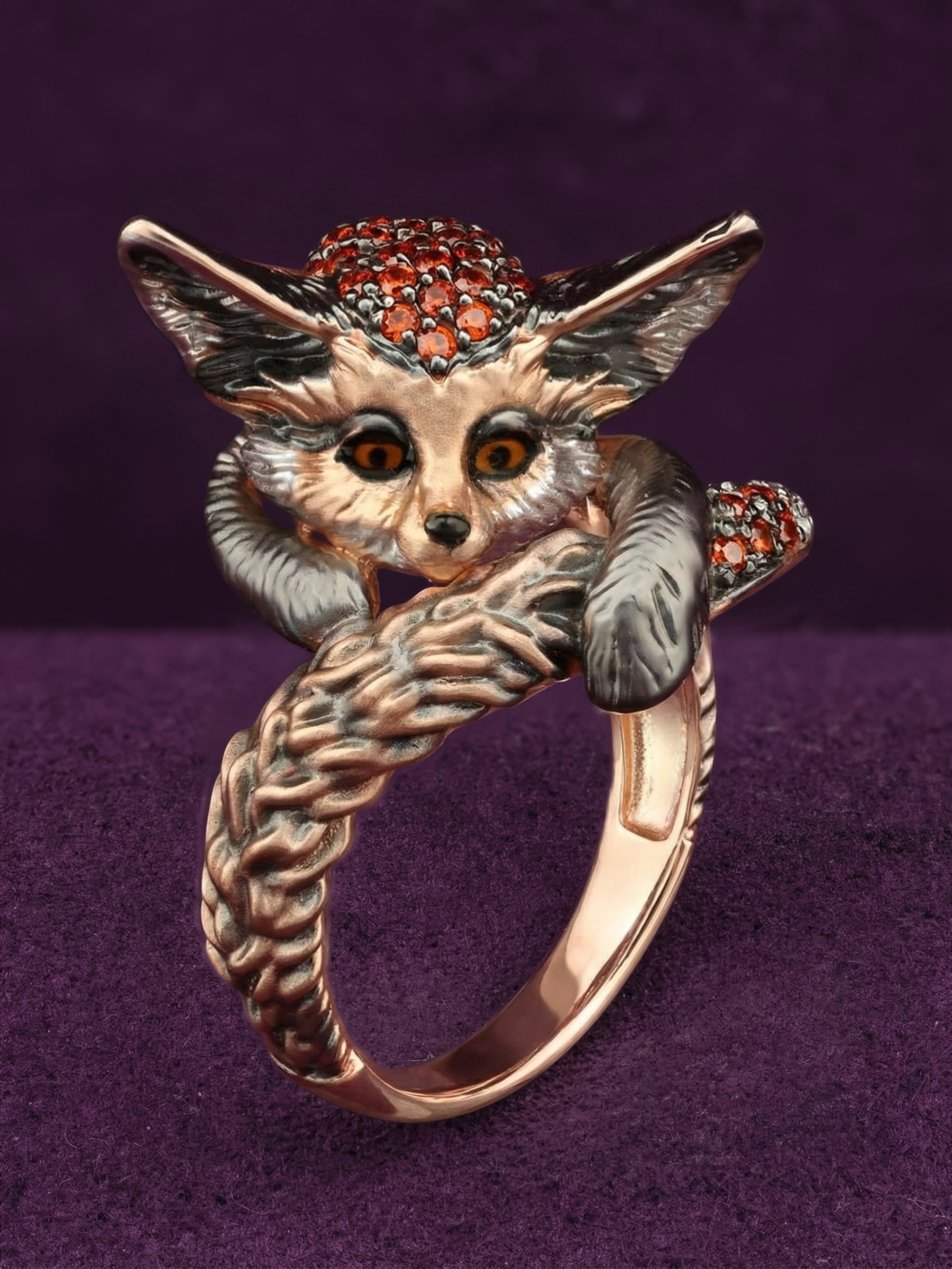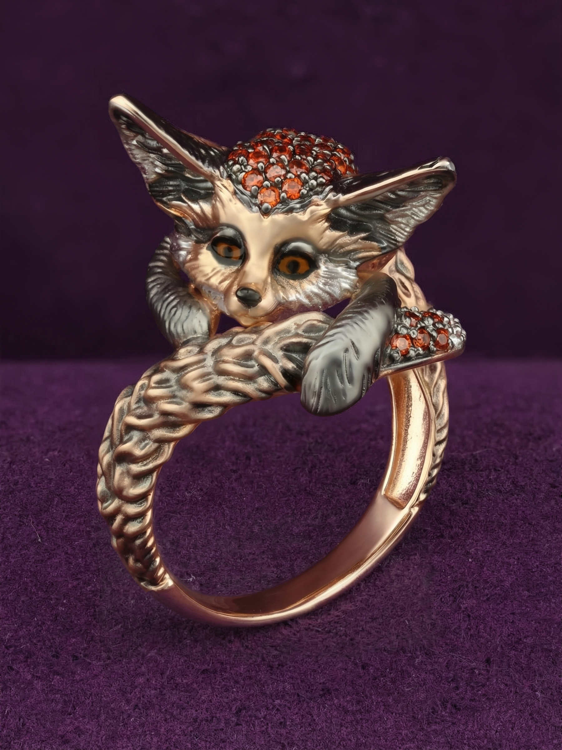 Оригинальное кольцо из красного золота 585 пробы из коллекции De Luxe — Лисёнок станет ярким акцентом в вашем образе. Дизайн украшения, вдохновленный грацией лисы, мастерски воплощен в благородном металле. Детализированная фигурка лисёнка выполнена с особой тщательностью, подчеркивая текстуру шерсти и выразительный взгляд.