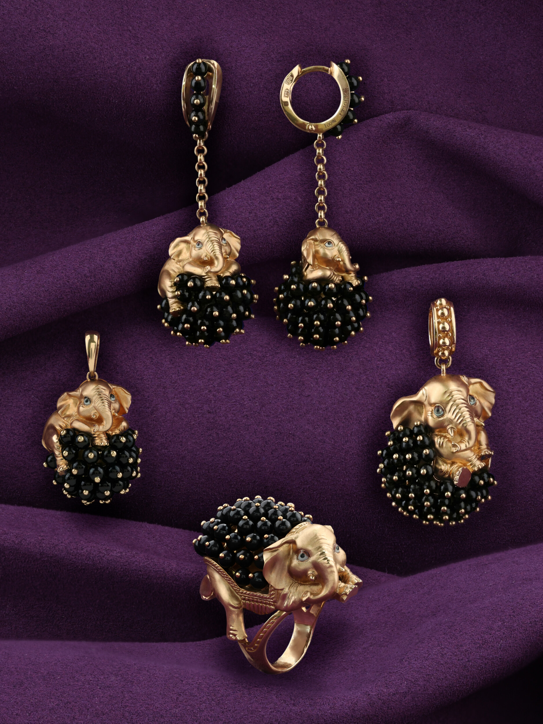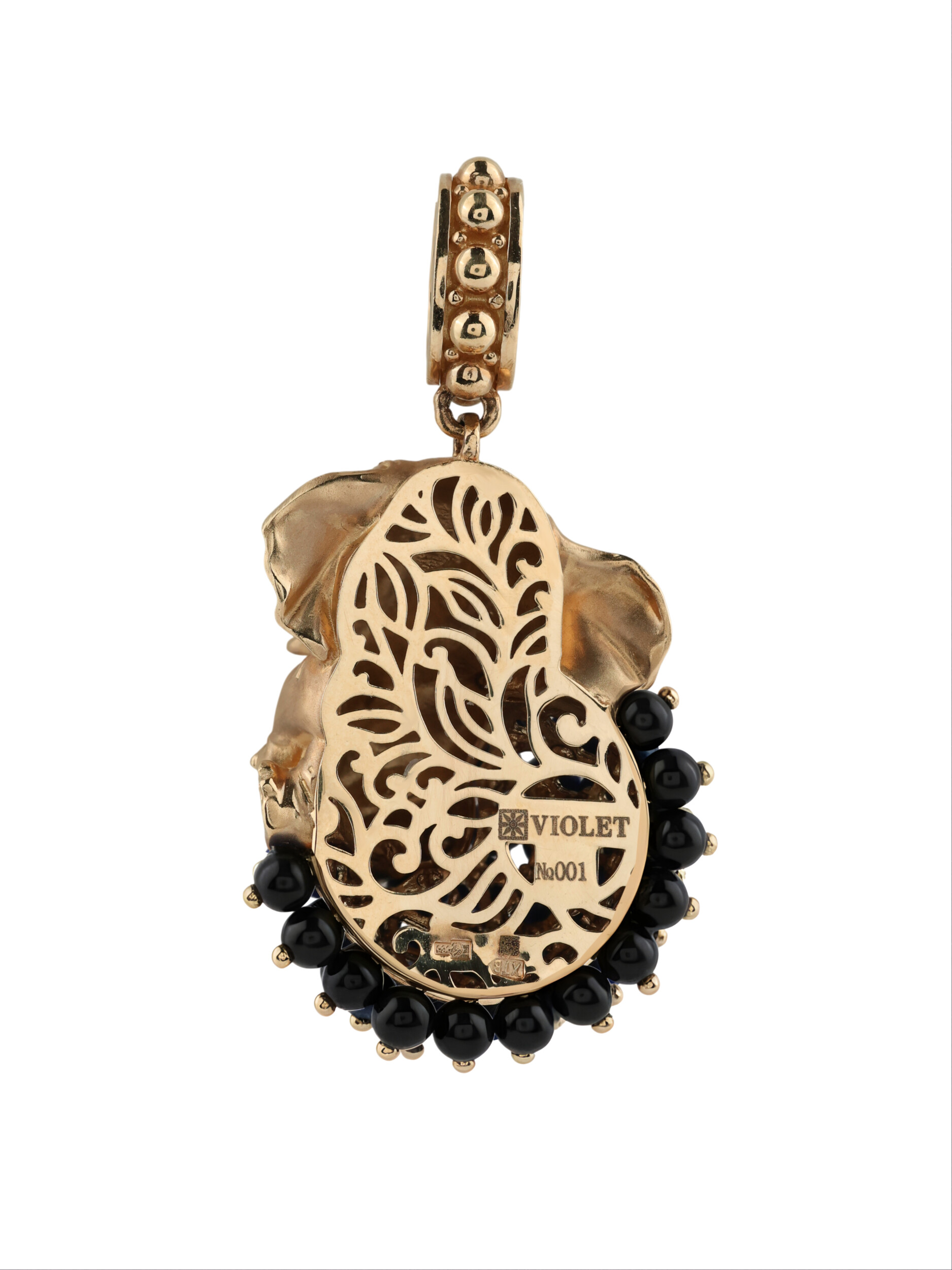 Подвеска из красного золота 585 пробы c эмалью и ониксом