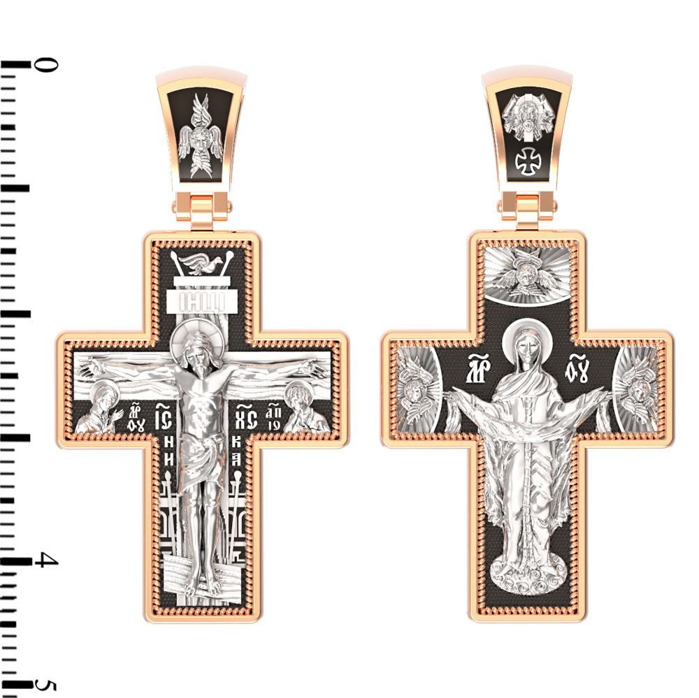 На обороте креста, в окружении крылатых Серафимов, изображена икона Покрова Пресвятой Богородицы. Праздник Покрова Божией Матери является воспоминанием чуда, которое произошло во Влахнернской церкви 1 (14) октября 910 года: Пресвятая Богородица явилась верующим над алтарем храма и распростерла над ними Свое покрывало. В этот день Божья Матерь открыла людям, что Она является Ходатаицей за них перед Богом. Богородица простирает Свой молитвенный покров над всеми православными христианами и умоляет Сына Своего о даровании вечного спасения каждому человеку.