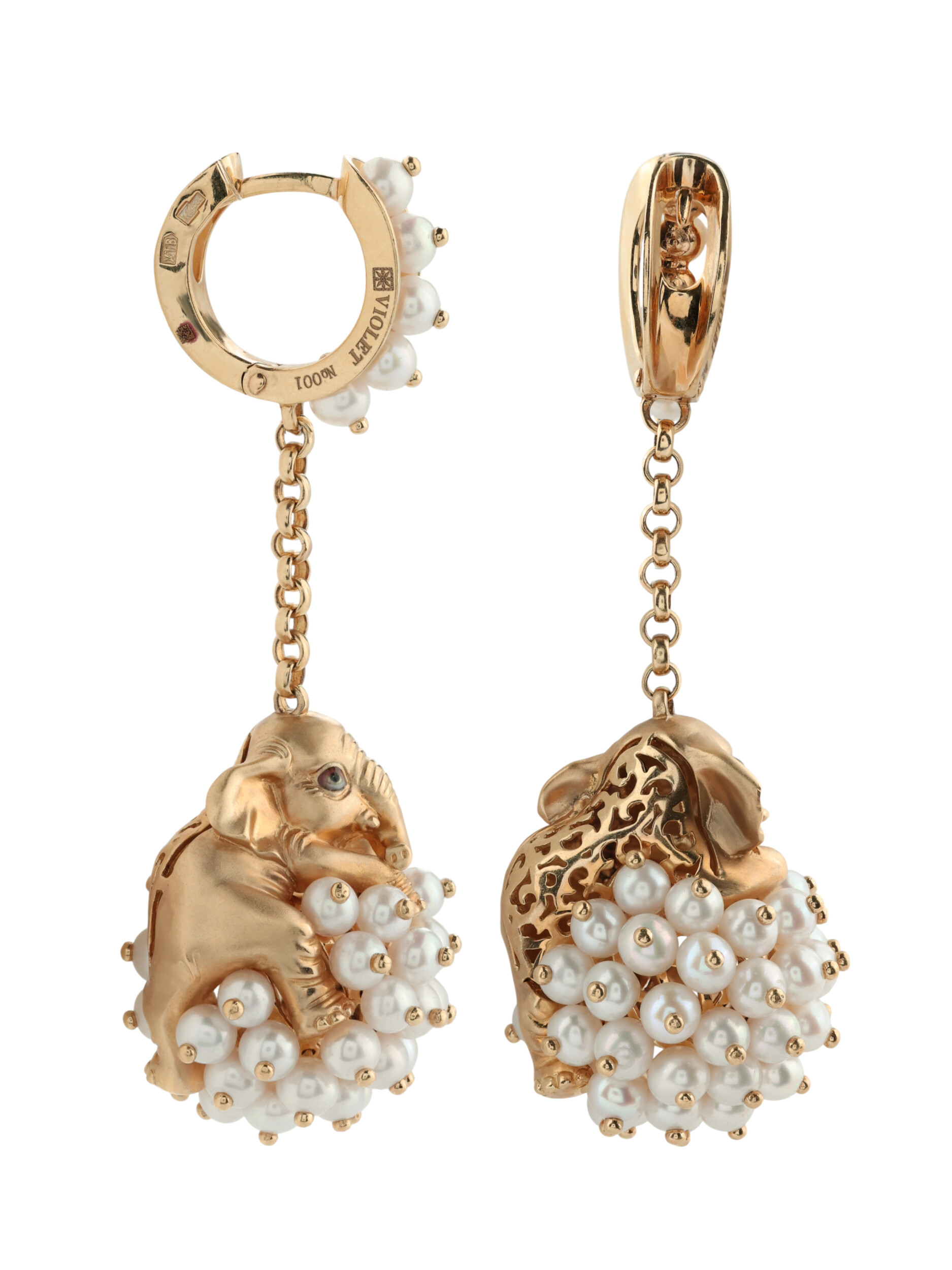 Роскошный декор дополняют 110 вставок из белого жемчуга круглой формы, которые создают завораживающую игру света и фактур. Разноцветная эмаль добавляет акценты, оживляя образ и делая его более динамичным. Эти серьги с дизайном в виде животных гармонично сочетают в себе классическую элегантность и смелые творческие решения. Они подходят для мужчин и женщин, ценящих эксклюзивные аксессуары, способные стать главным акцентом стильного образа.
