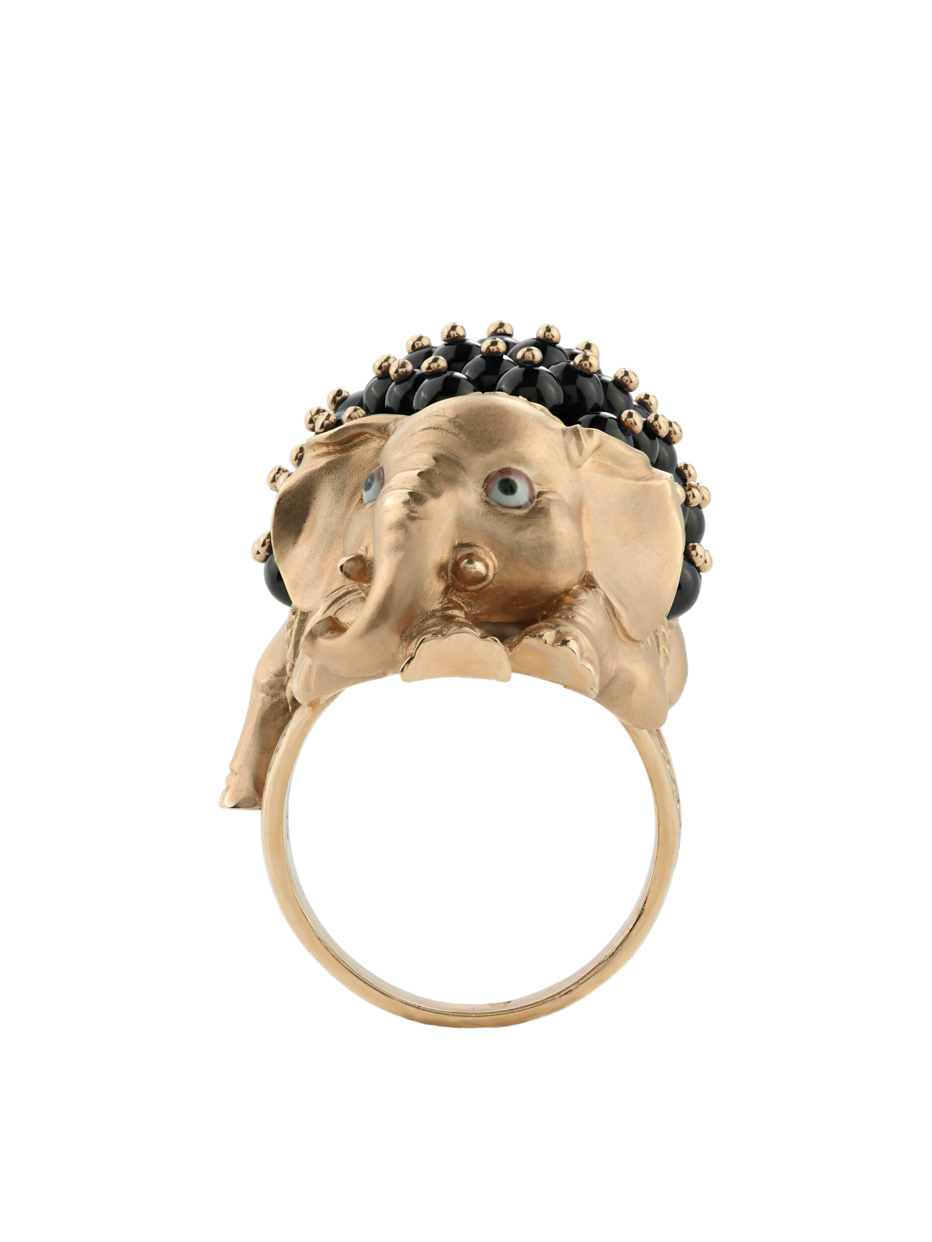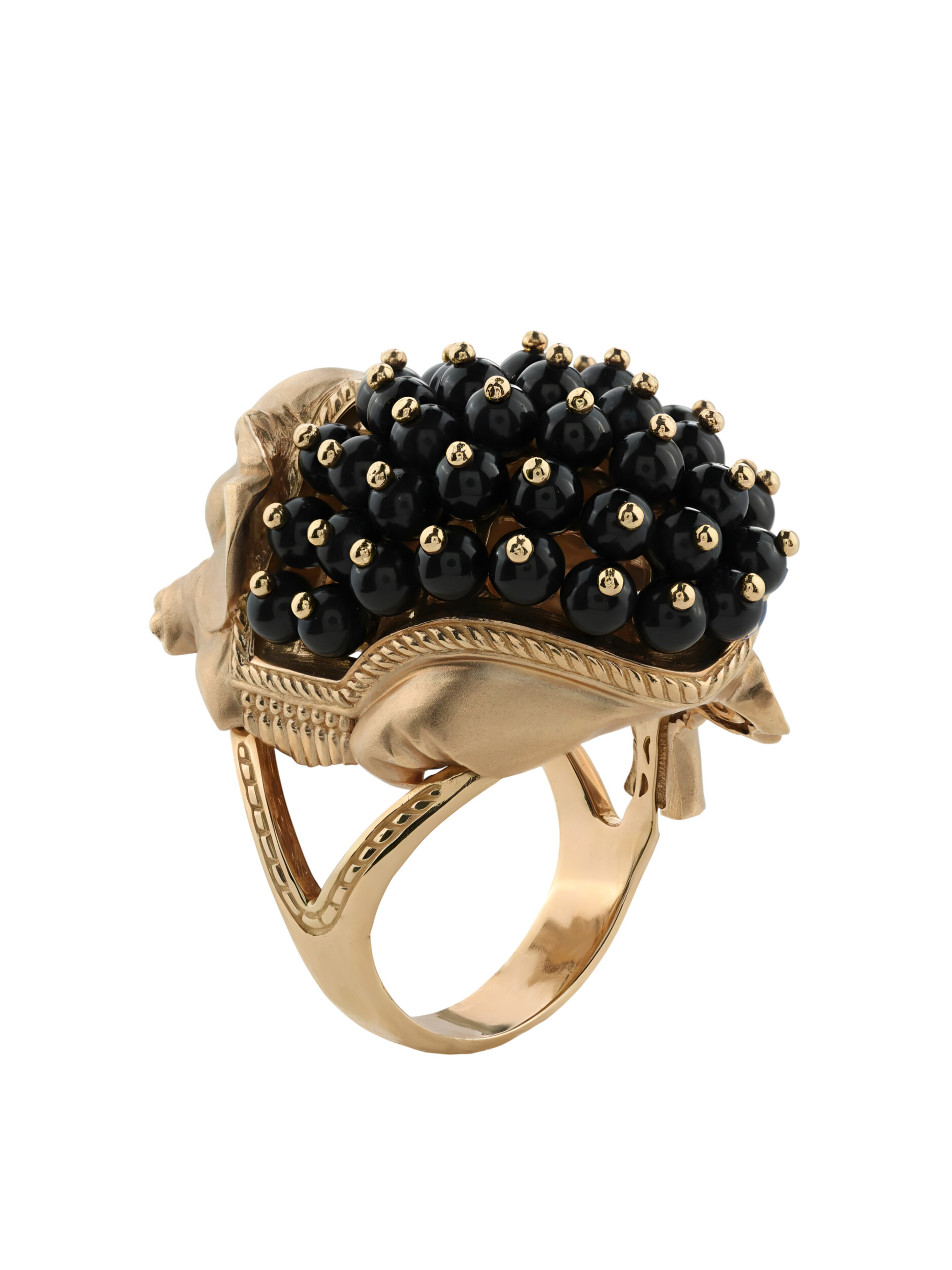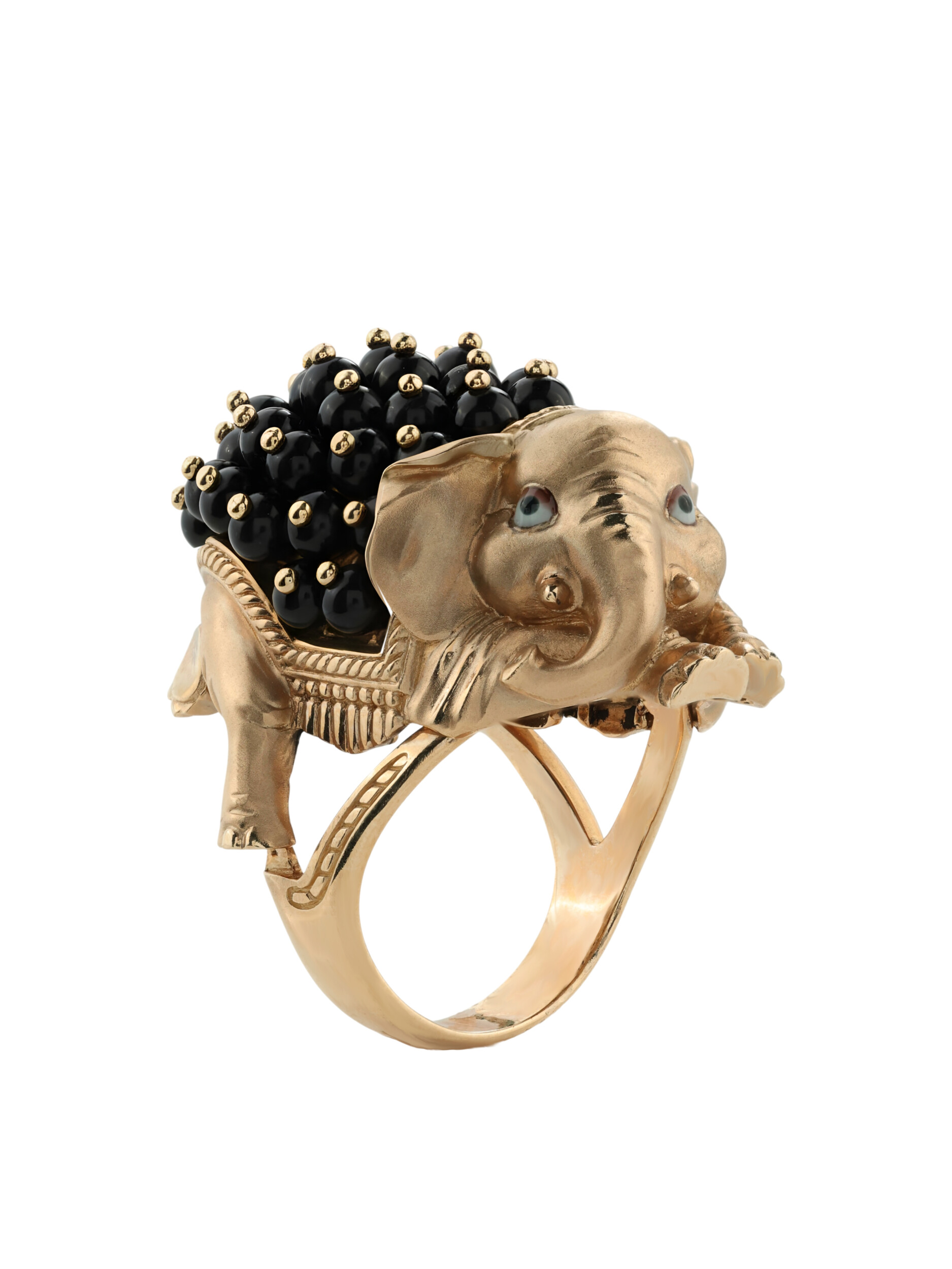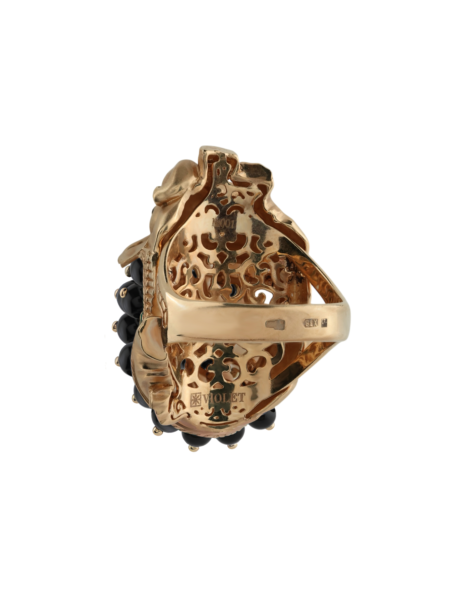 Особый шарм изделию добавляет инкрустация: кольцо украшено 46 вставками из оникса в форме бусин. Контрастное сочетание теплого оттенка красного золота и насыщенного черного цвета оникса создает благородный и стильный визуальный эффект. Разноцветные акценты эмали подчеркивают проработку каждой детали, делая украшение по-настоящему запоминающимся.
