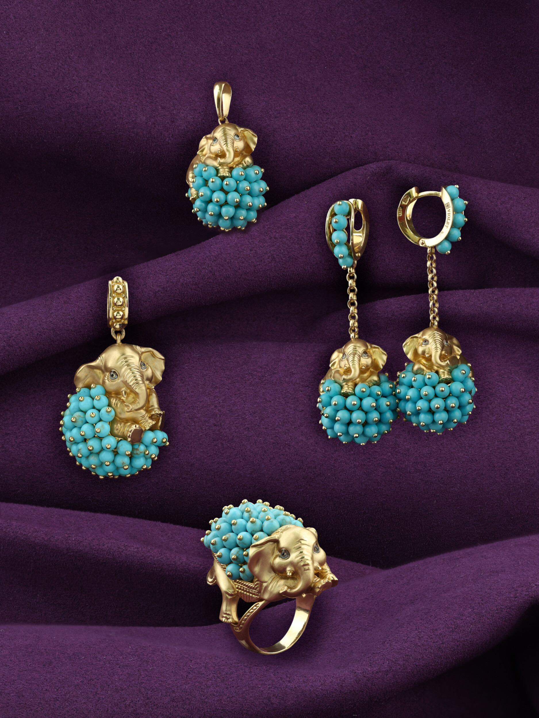 Серьги из коллекции De luxe Premium — Слонята представляют собой удивительный образец ювелирного искусства, где смелый дизайн встречается с благородными материалами. Изделие выполнено из лимонного золота 585 пробы, чей теплый оттенок идеально гармонирует с ярким акцентом вставок. Центральным элементом украшения является искусная фигурка слона, дополненная россыпью из 110 вставок бирюзы в форме бусин. Бирюзовый цвет камней в сочетании с разноцветной эмалью создает выразительный визуальный контраст, делая серьги заметным и запоминающимся аксессуаром.