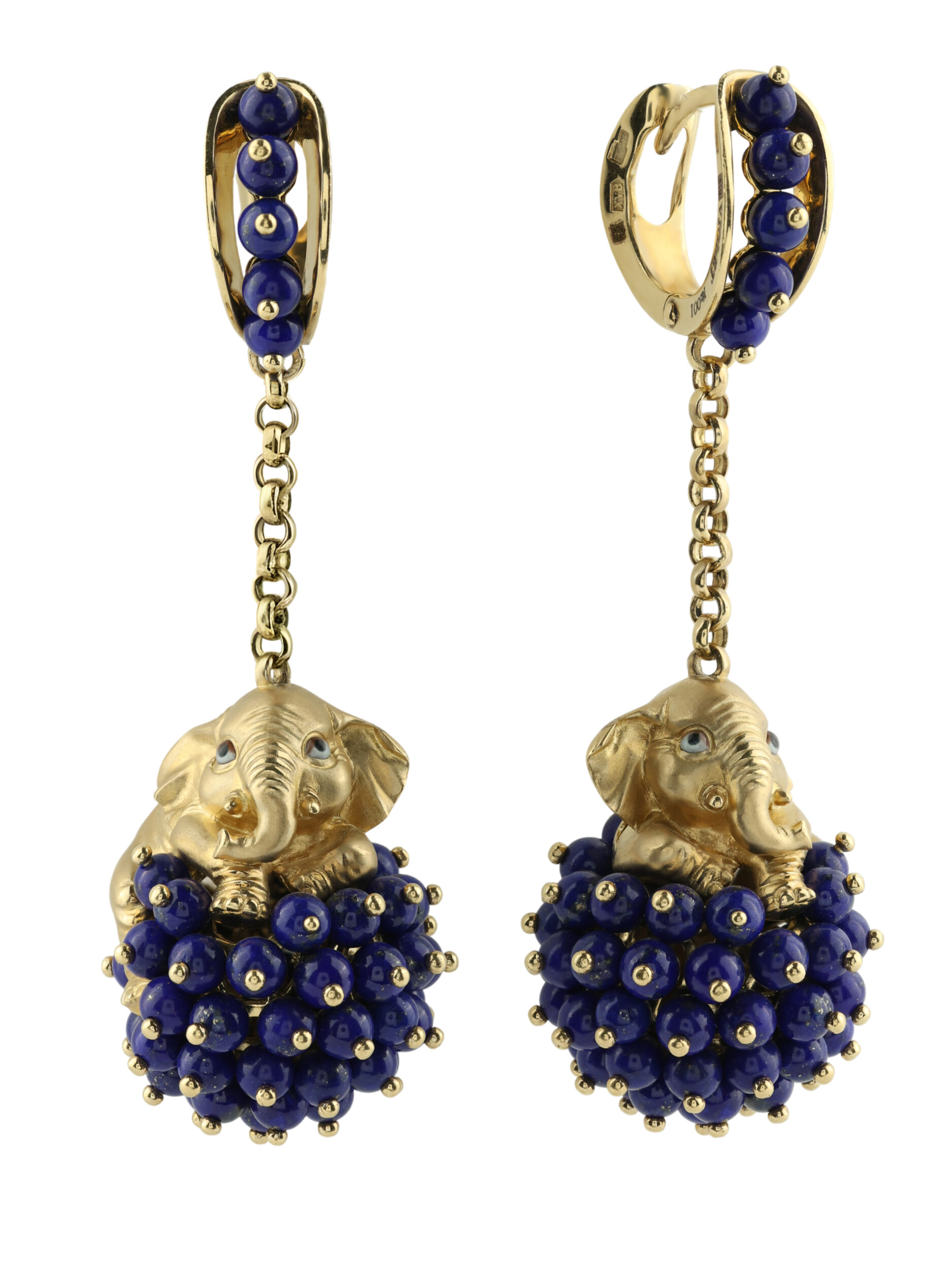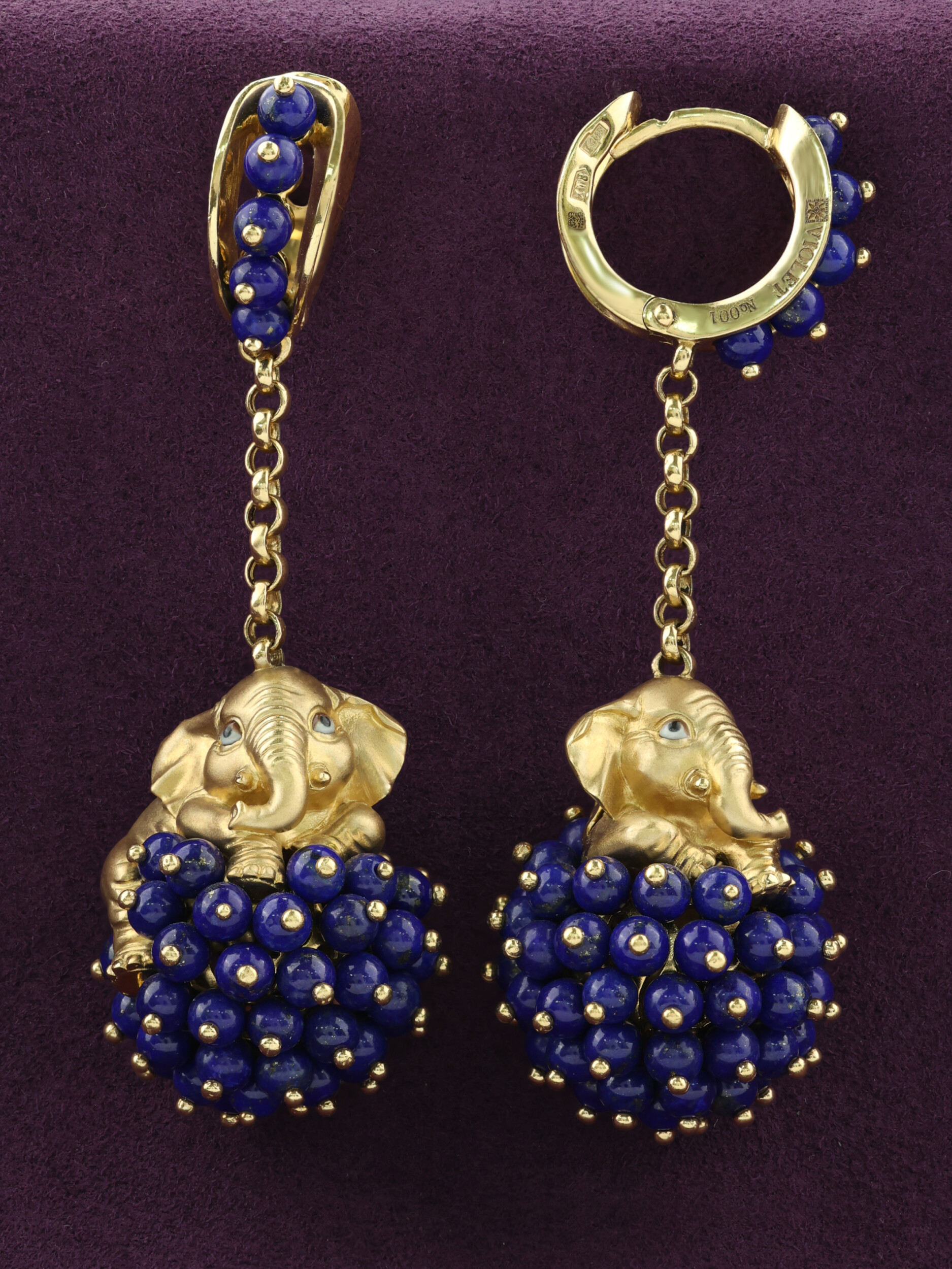 В дизайне гармонично сочетаются 110 вставок лазурита в форме бусин, придавая серьгам объем и выразительную фактуру. Цветовая палитра — от насыщенного синего до благородного лимонного — делает аксессуар по-настоящему статусным. Эти серьги созданы для ценителей эксклюзивных украшений и прекрасно подходят как для женщин, так и для мужчин, стремящихся подчеркнуть свою индивидуальность.