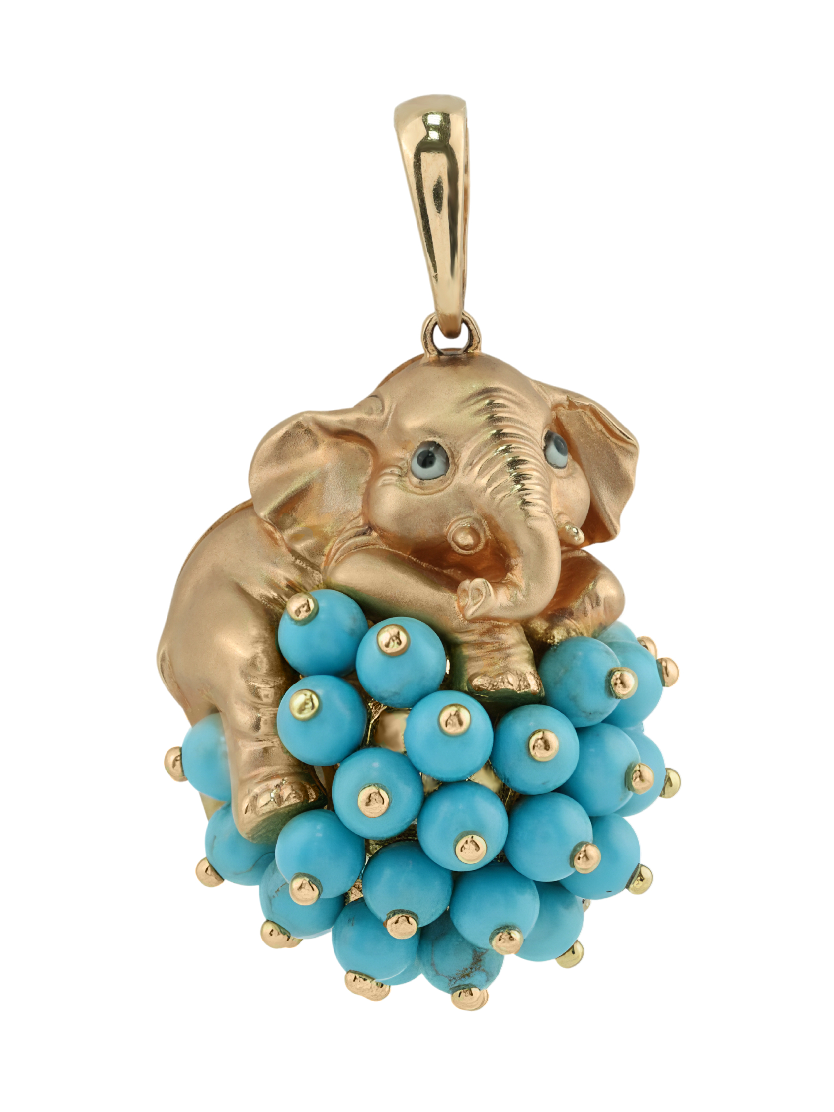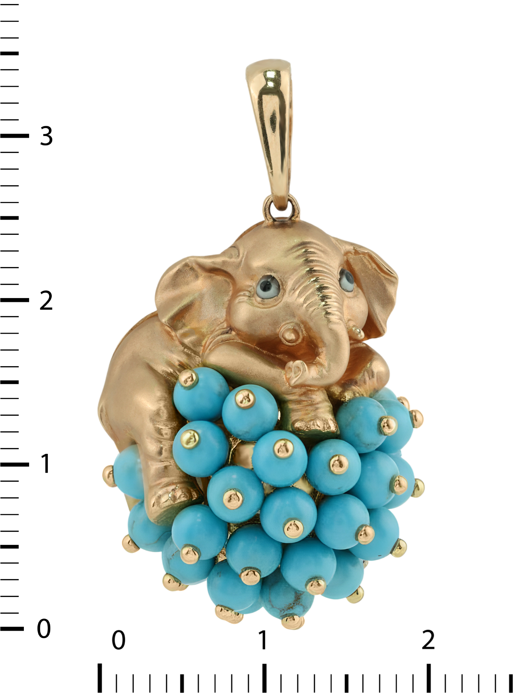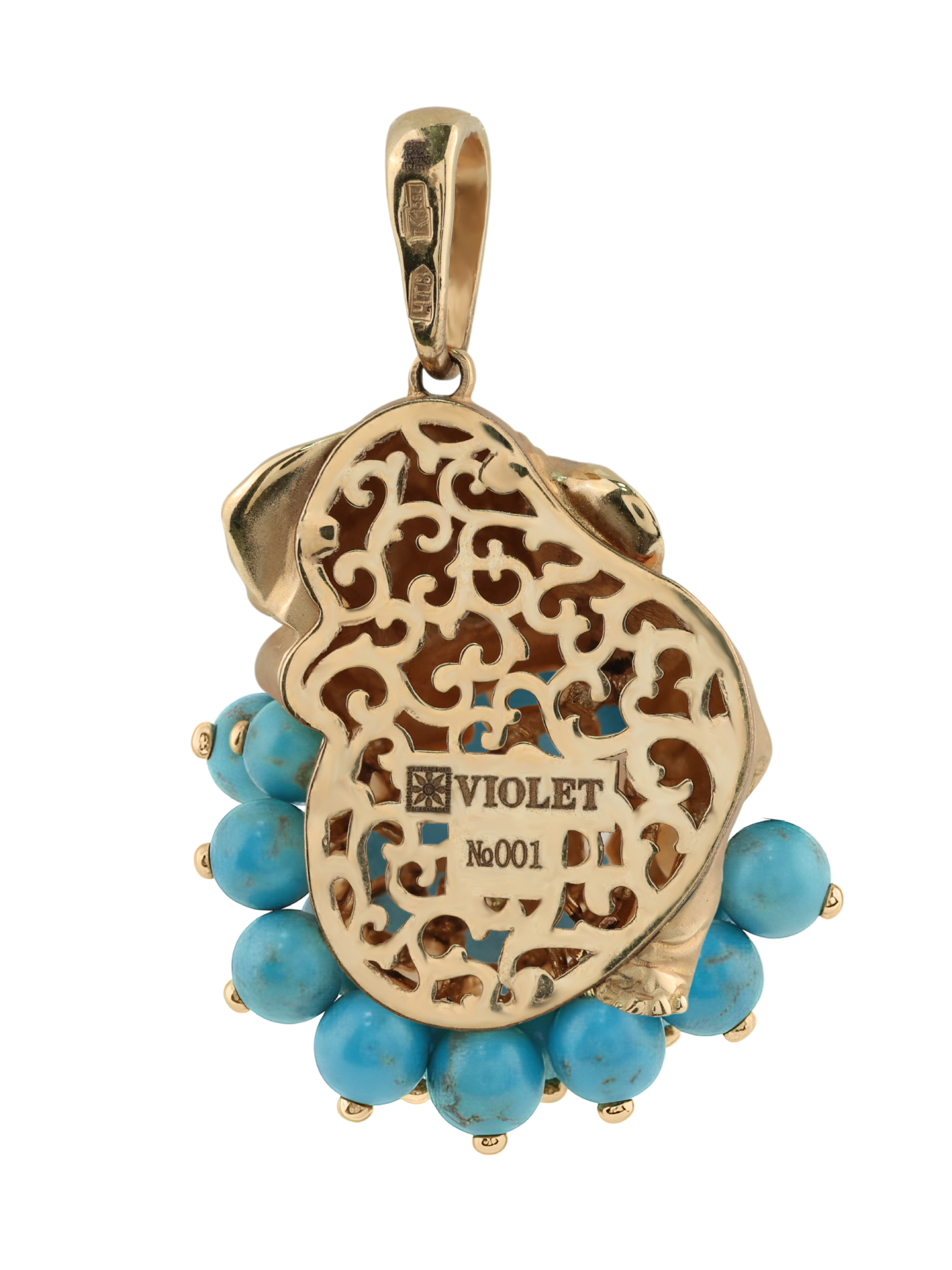 Подвеска из красного золота 585 пробы c эмалью и бирюзой