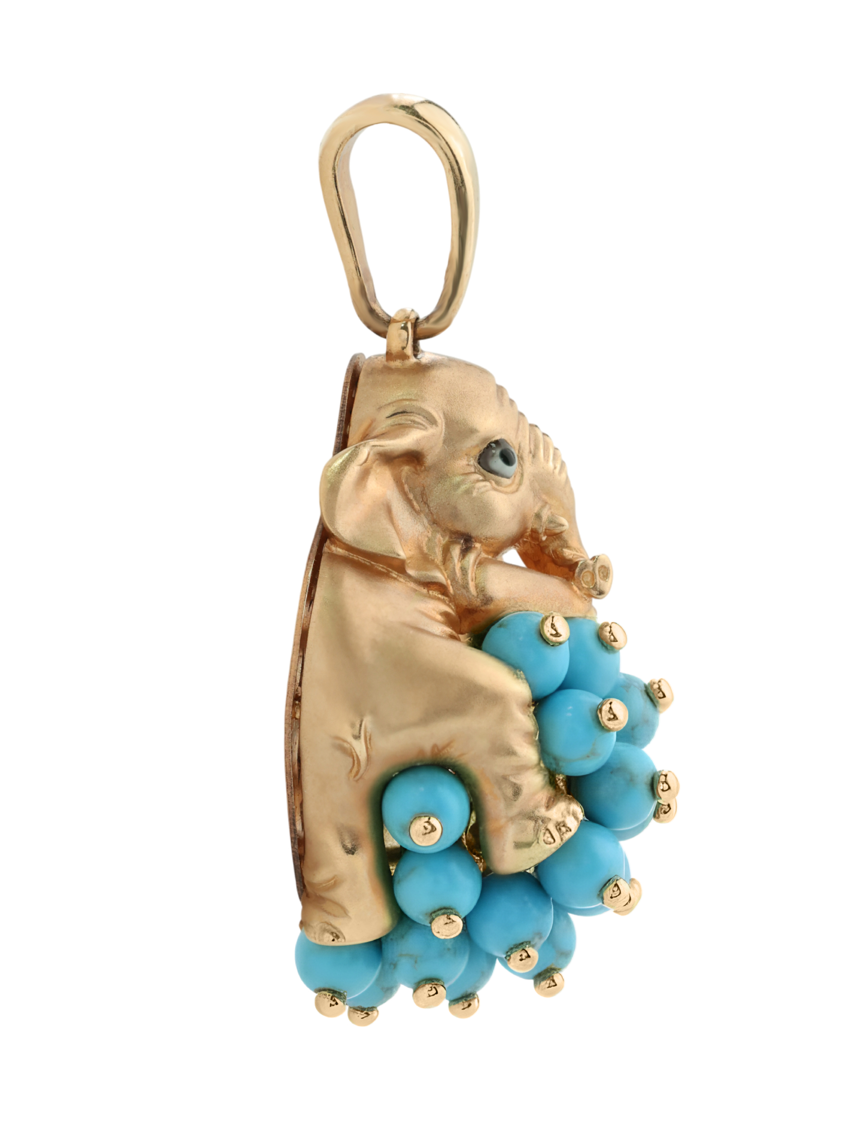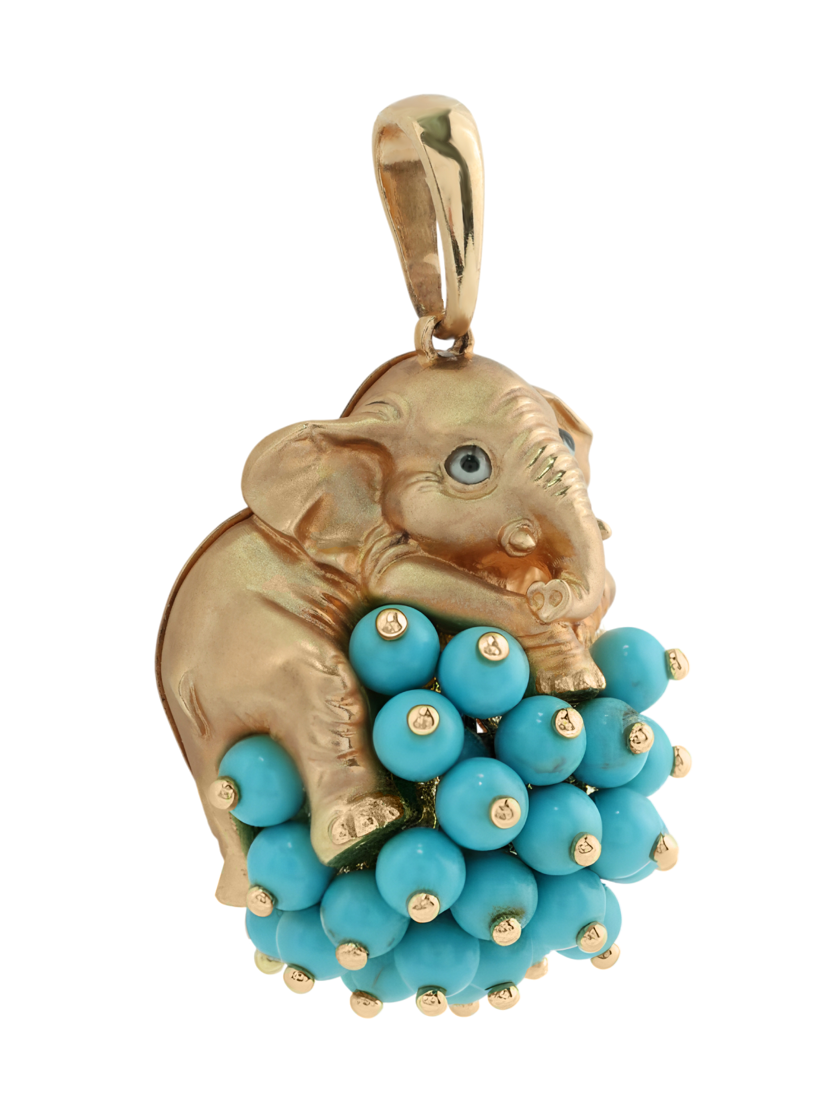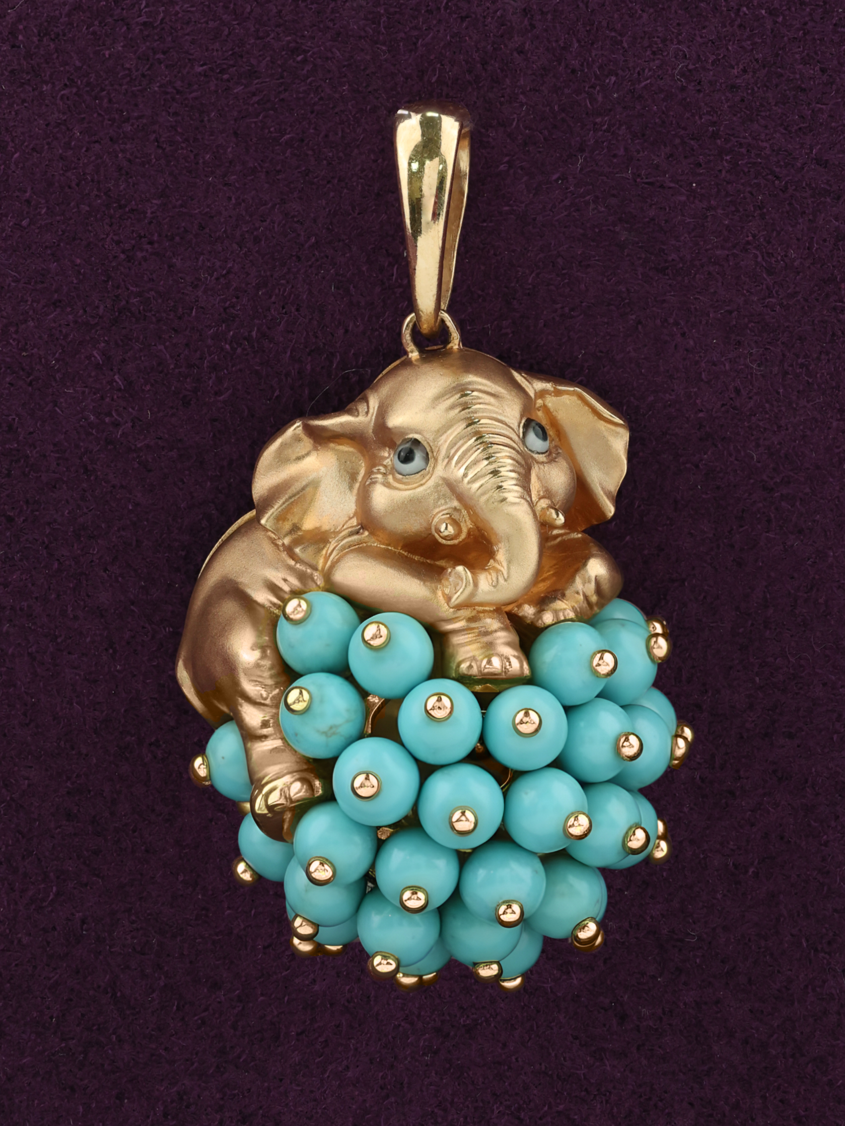 Подвеска из красного золота 585 пробы c эмалью и бирюзой