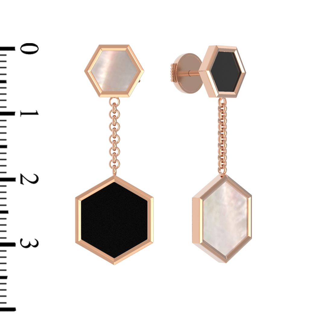 Серьги из красного золота 585 пробы c ониксом и перламутром