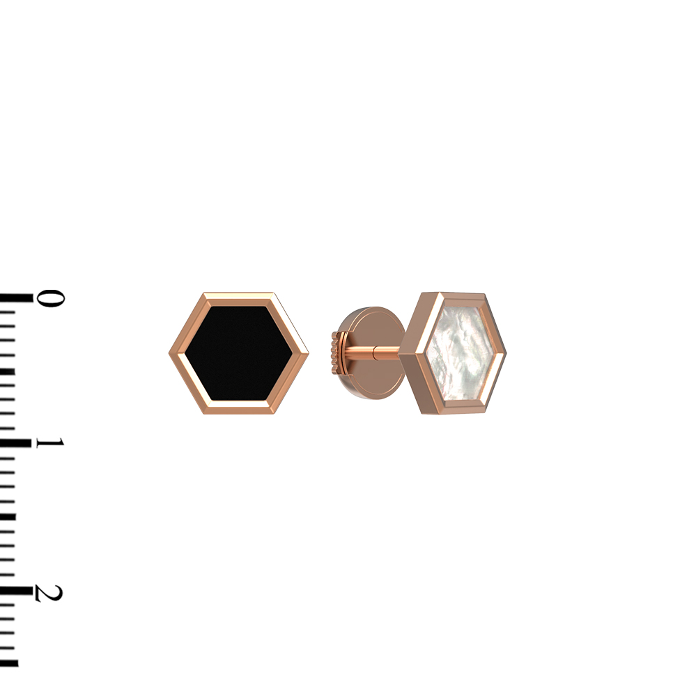 Серьги из красного золота 585 пробы c ониксом и перламутром