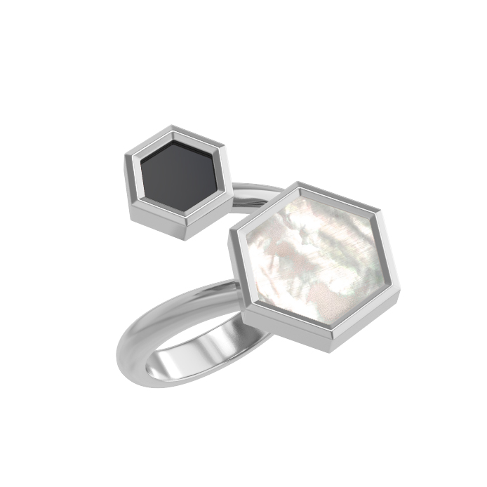 Элегантное кольцо из белого золота 585 пробы — яркий акцент, созданный для тех, кто ценит современный дизайн и лаконичность форм. Вдохновением для ювелиров стала научная эстетика: дизайн Молекула воплощает строгость линий и гармонию геометрии. Центральным элементом украшения выступают вставки в форме шестигранника, которые притягивают взгляд своим контрастным сочетанием фактур и оттенков.