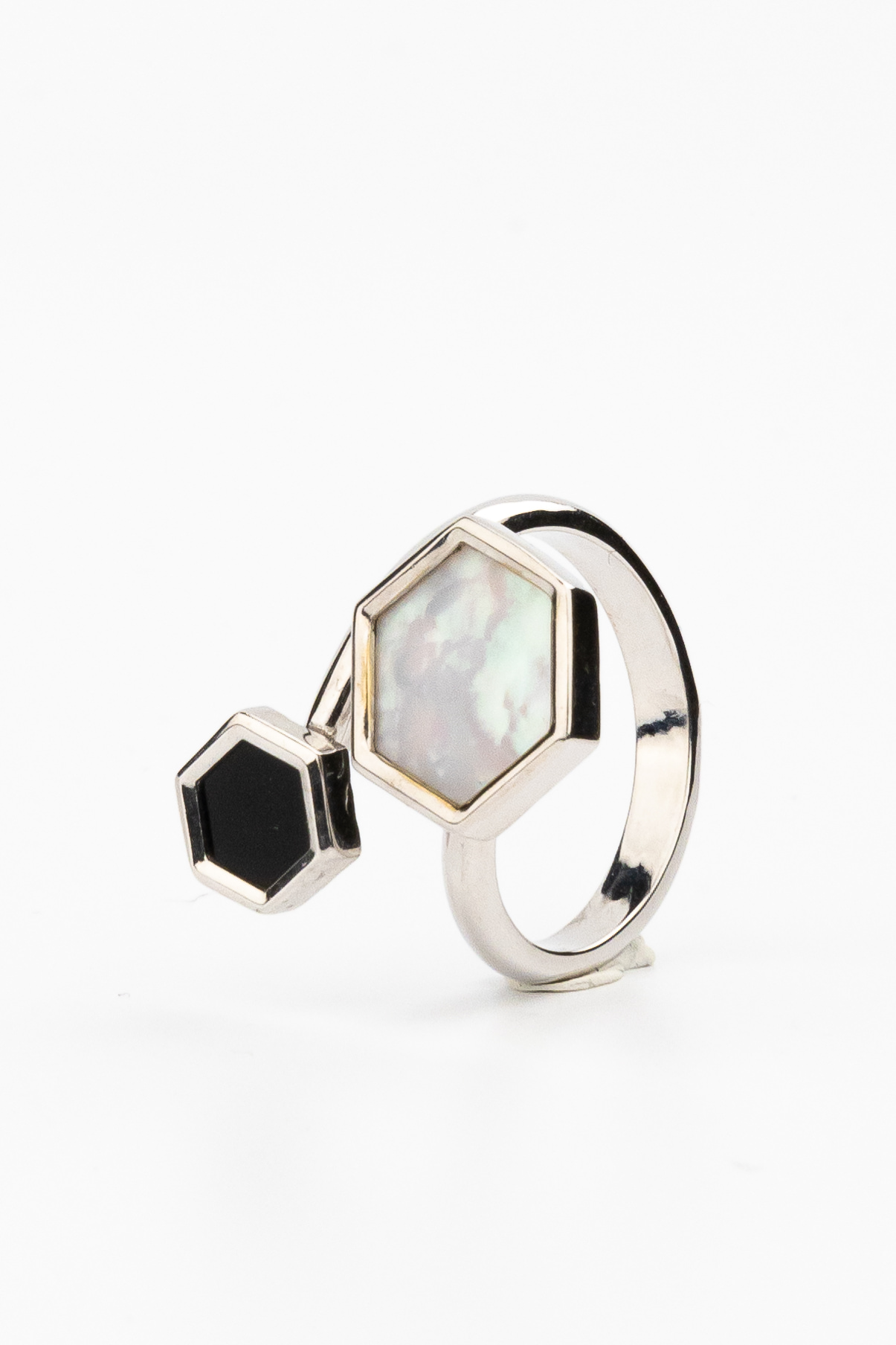 Кольцо из белого золота c ониксом и перламутром