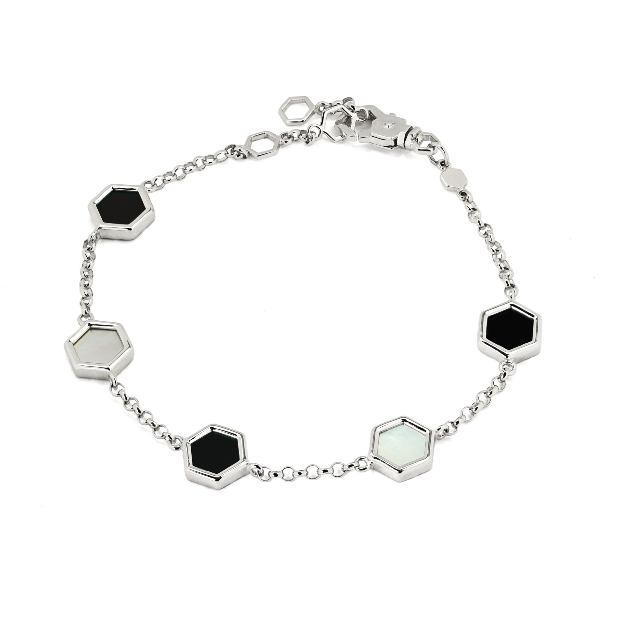 Браслет из белого золота 585 пробы c ониксом и перламутром