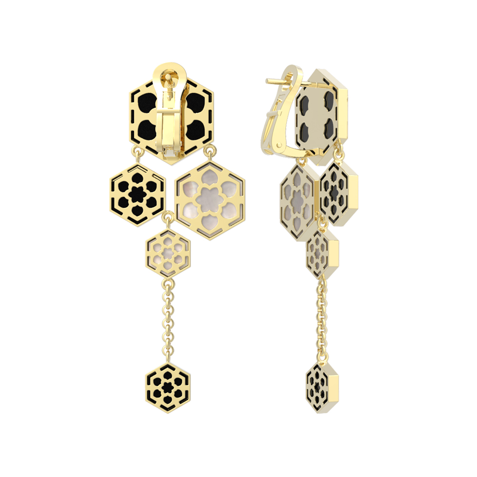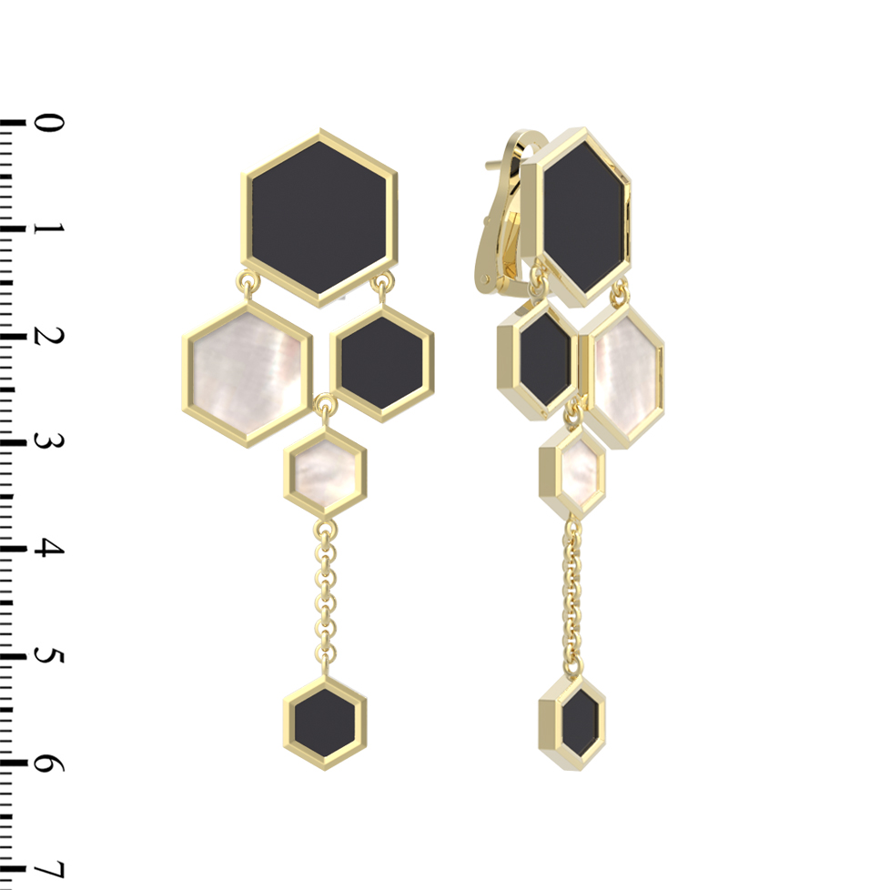 Серьги из лимонного золота 585 пробы c ониксом и перламутром