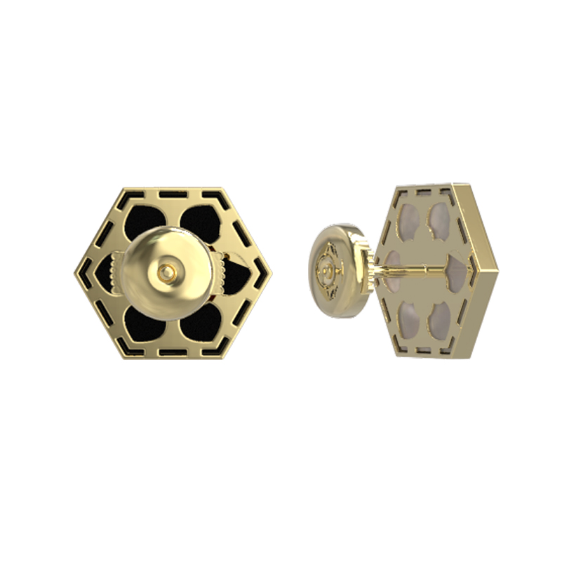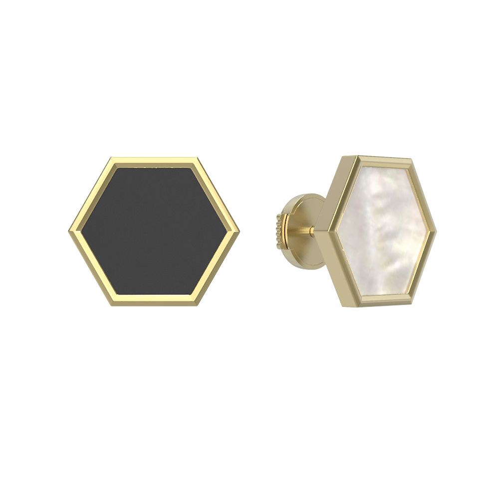 Серьги из лимонного золота 585 пробы c ониксом и перламутром