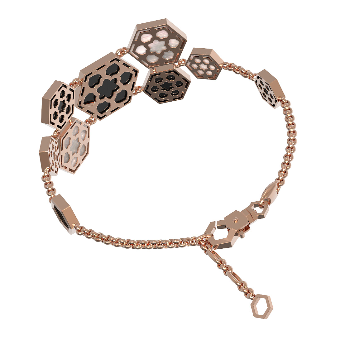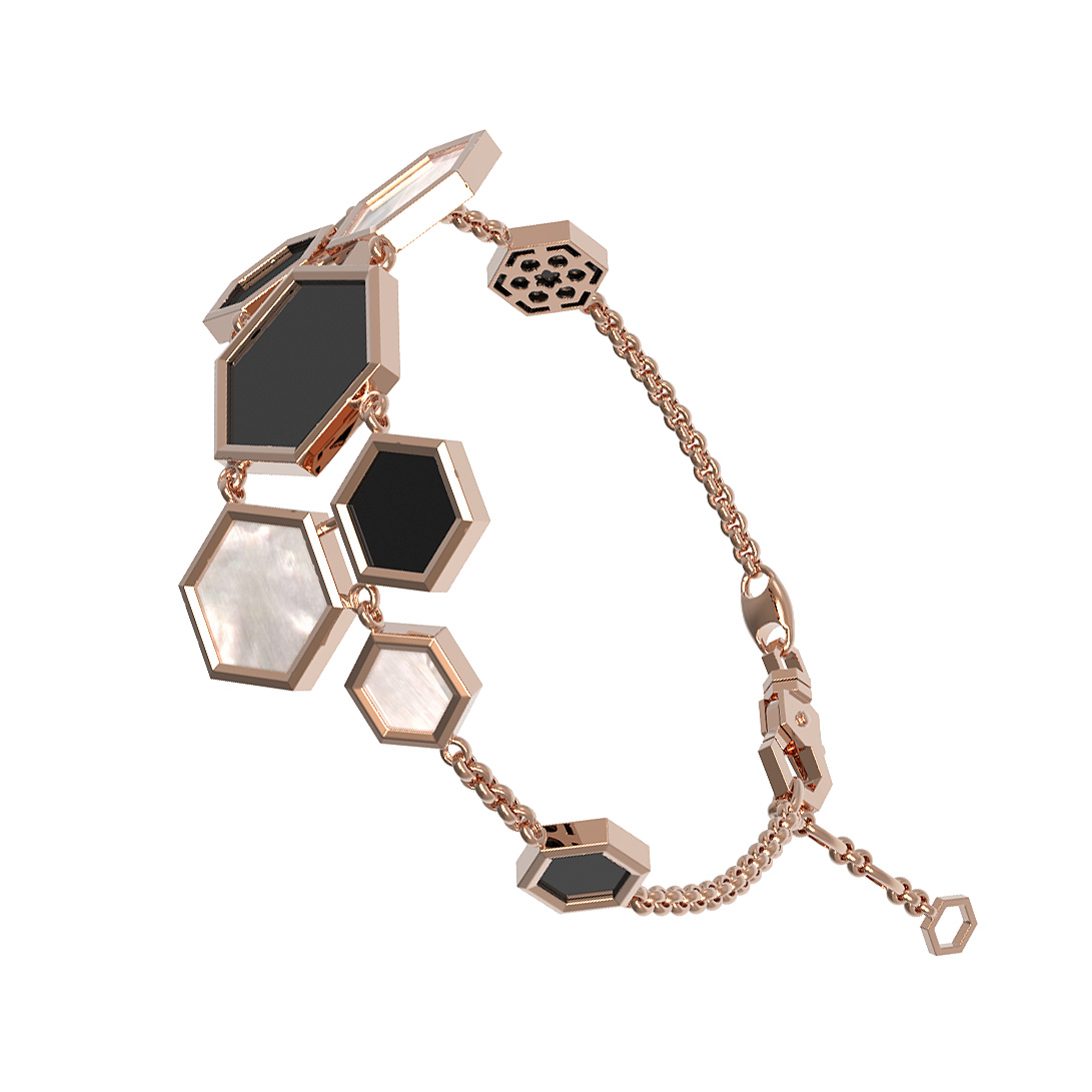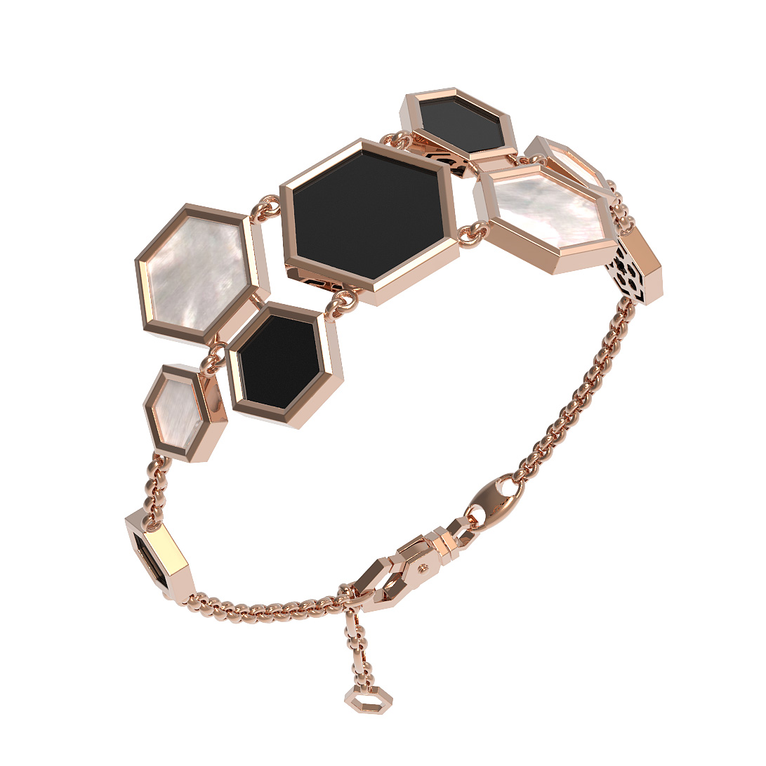 Браслет из красного золота 585 пробы c ониксом и перламутром