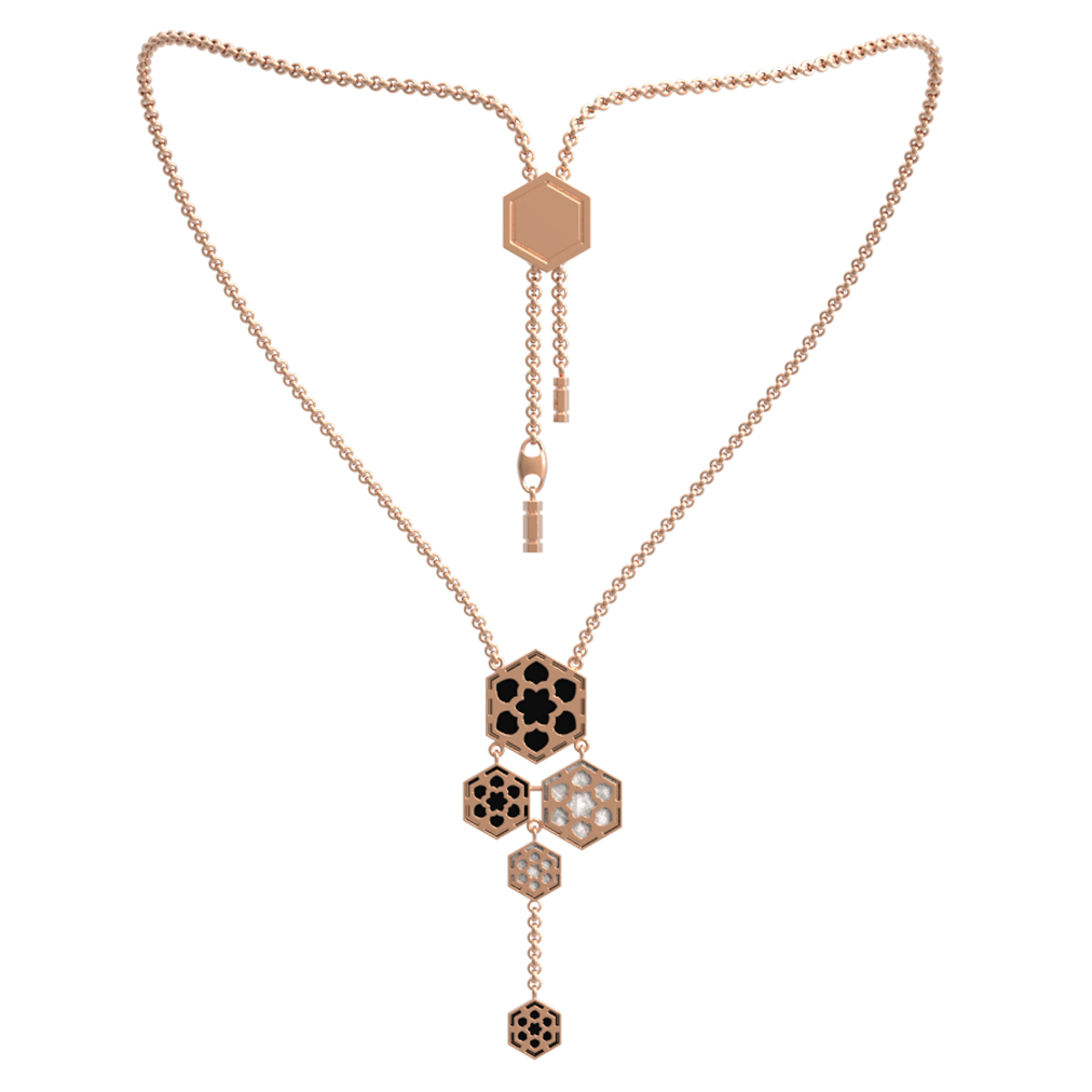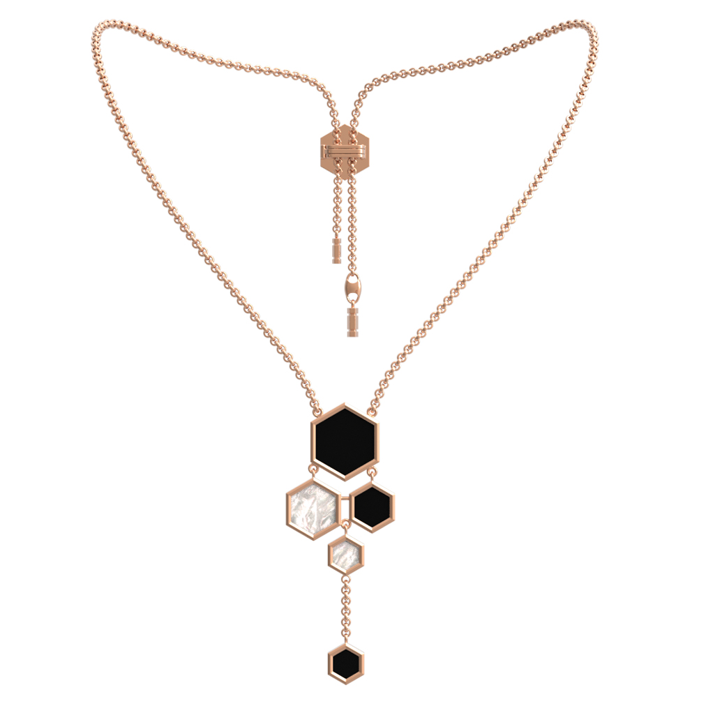 Колье из красного золота 585 пробы c ониксом и перламутром