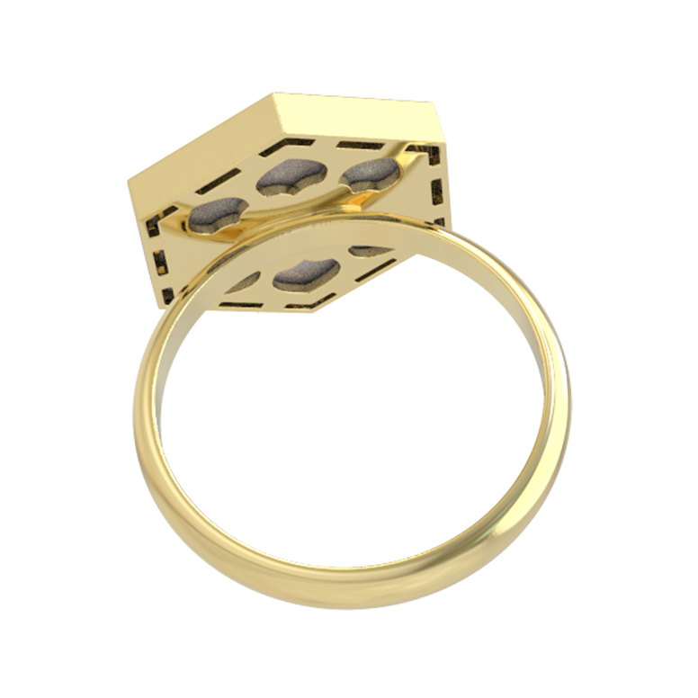 Откройте для себя воплощение современной эстетики в изысканном кольце из лимонного золота 585 пробы из коллекции De Luxe — Молекула. Это украшение создано для тех, кто ценит геометрическую точность и природную нежность материалов. Центральным элементом композиции выступает крупная вставка из перламутра, выполненная в оригинальной форме шестигранника. Неповторимый перелив перламутровой поверхности в сочетании с благородным лимонным оттенком золота создает эффектный контраст, приковывающий взгляды.