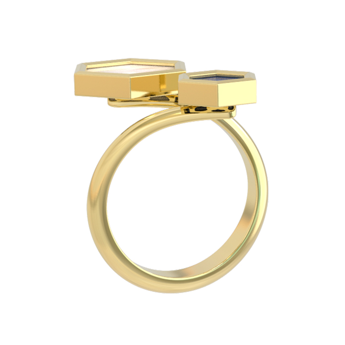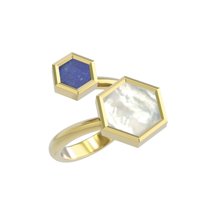 Кольцо из лимонного золота 585 пробы c лазуритом и перламутром