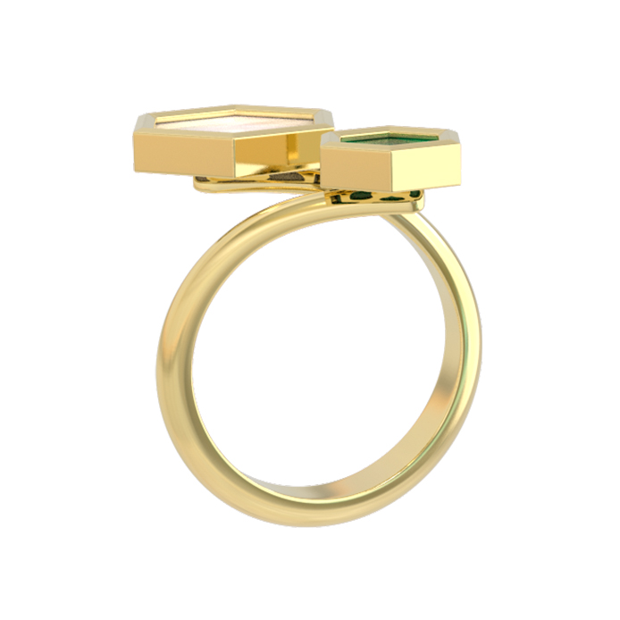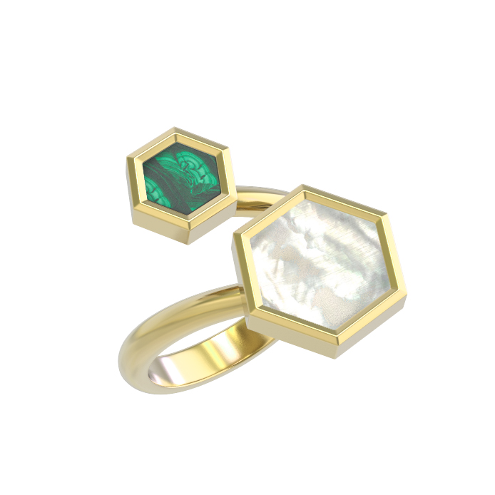 Кольцо из лимонного золота 585 пробы c малахитом и перламутром