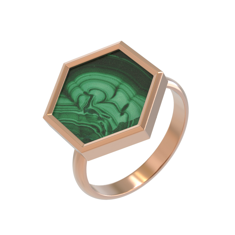 Кольцо из красного золота 585 пробы c малахитом