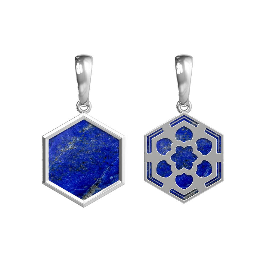 Мастера уделили особое внимание деталям, создав гармоничный контраст между металлом и камнем. Вставка из лазурита имеет насыщенный синий оттенок, который делает подвеску заметным и выразительным аксессуаром. Это универсальное украшение, созданное для женщин и мужчин, которые ценят интеллектуальный дизайн и качественные материалы.