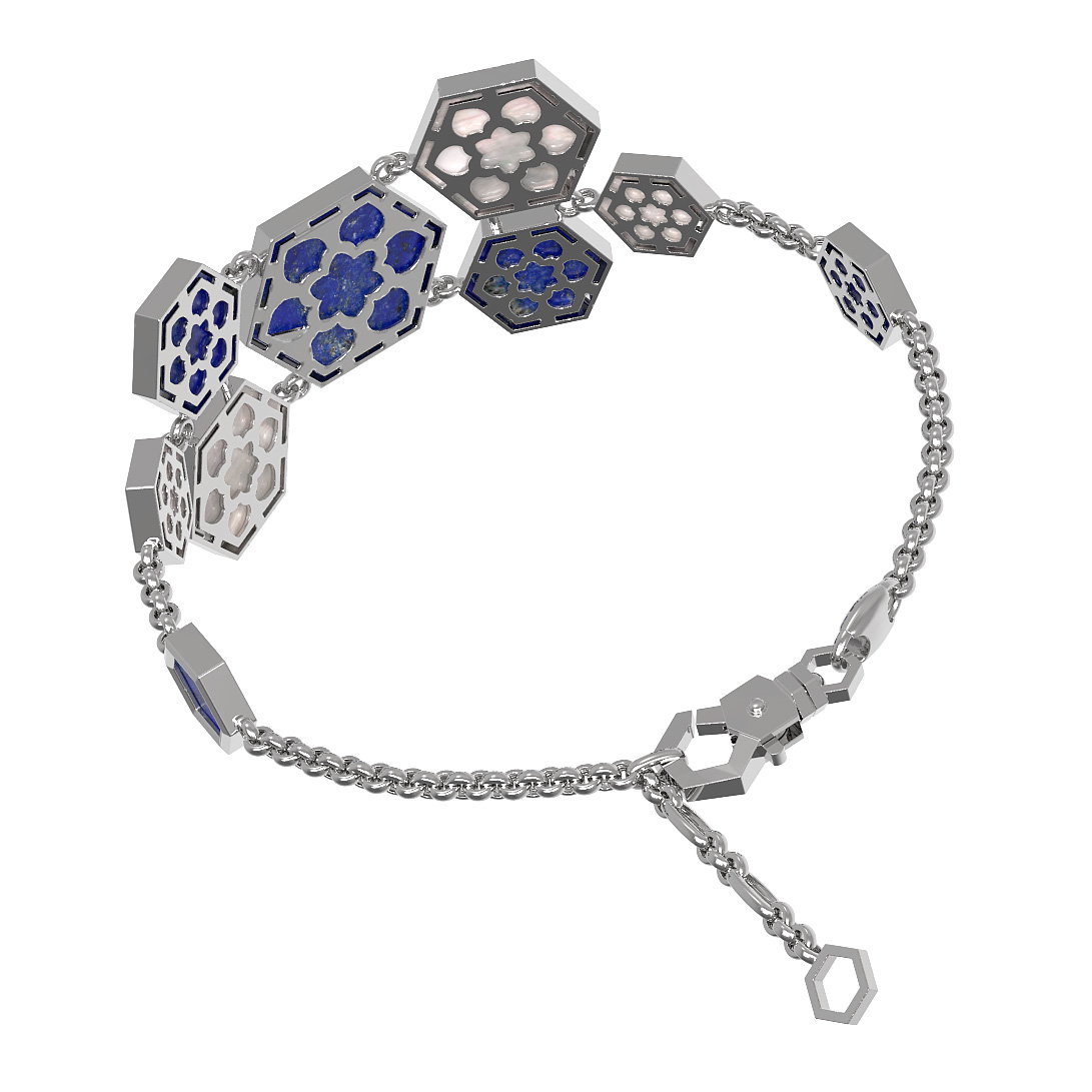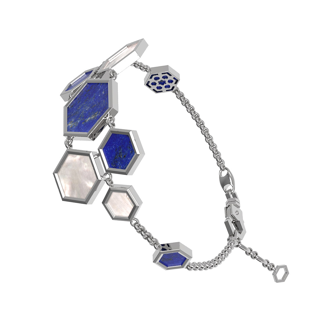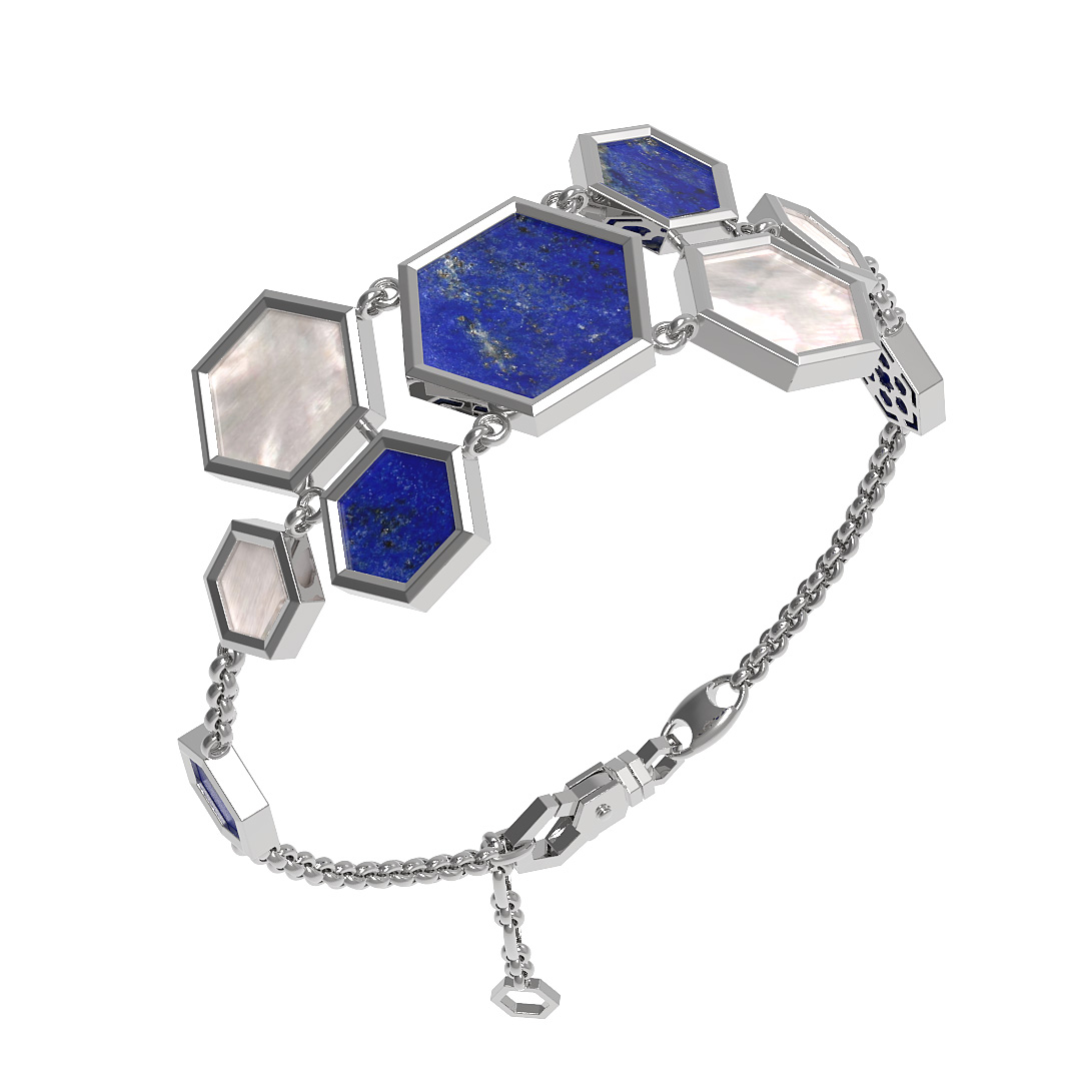 Браслет из белого золота 585 пробы c лазуритом и перламутром