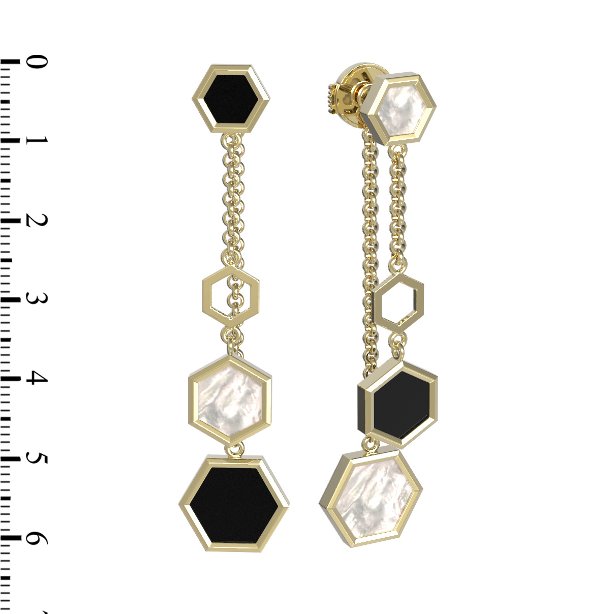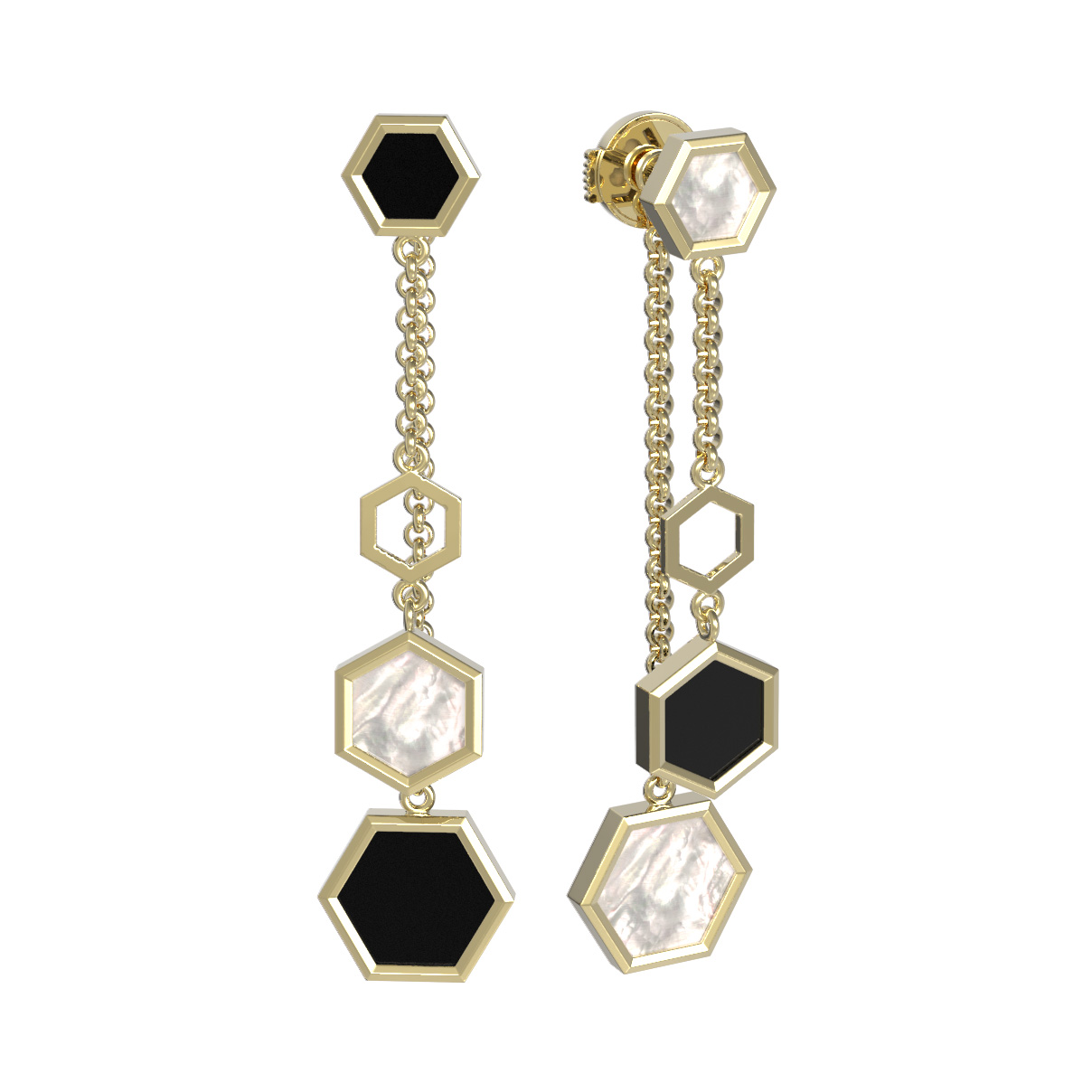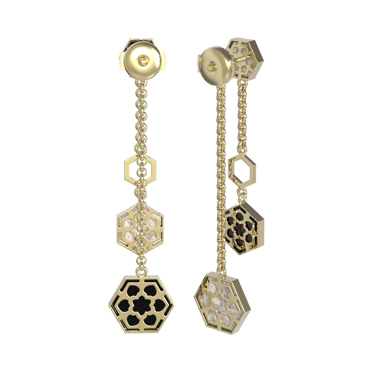Серьги из лимонного золота 585 пробы c ониксом и перламутром