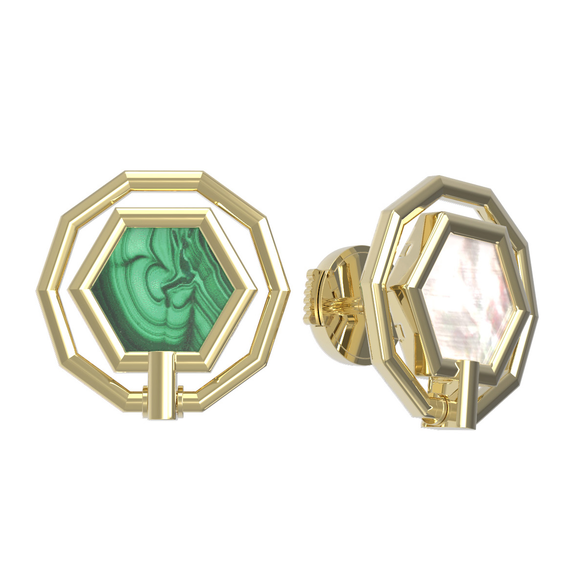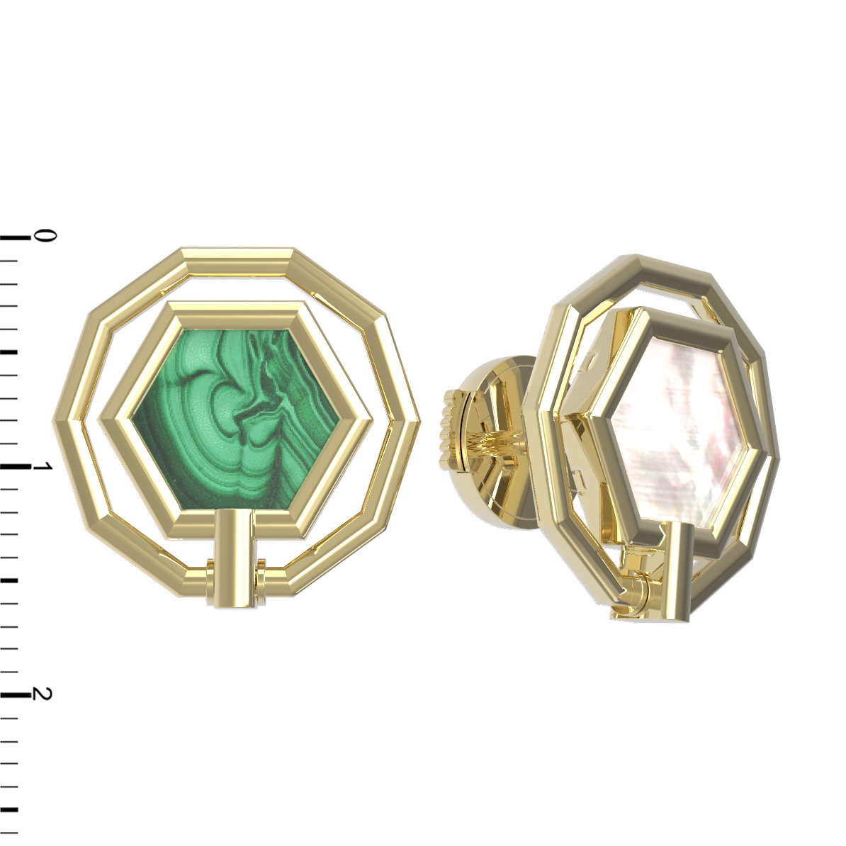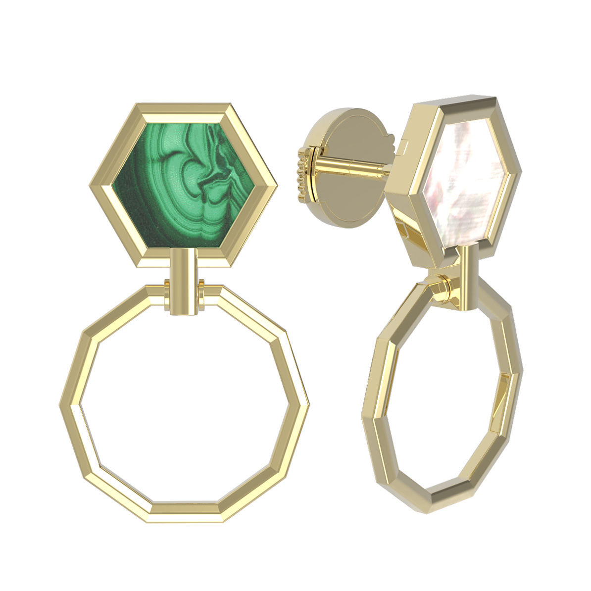 Серьги из лимонного золота 585 пробы c малахитом и перламутром
