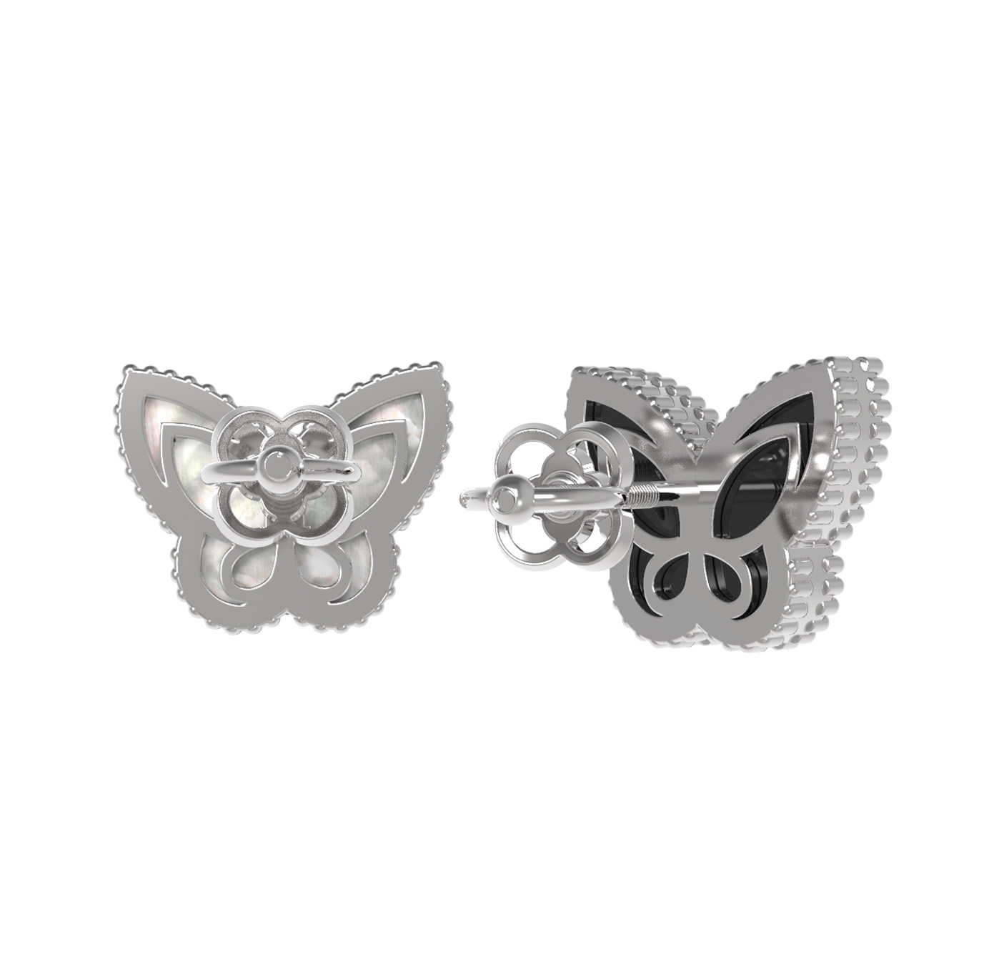 Серьги из белого золота c ониксом и перламутром