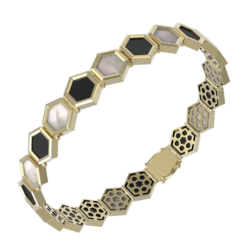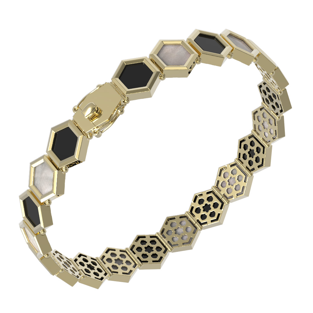 Браслет из лимонного золота 585 пробы c ониксом и перламутром