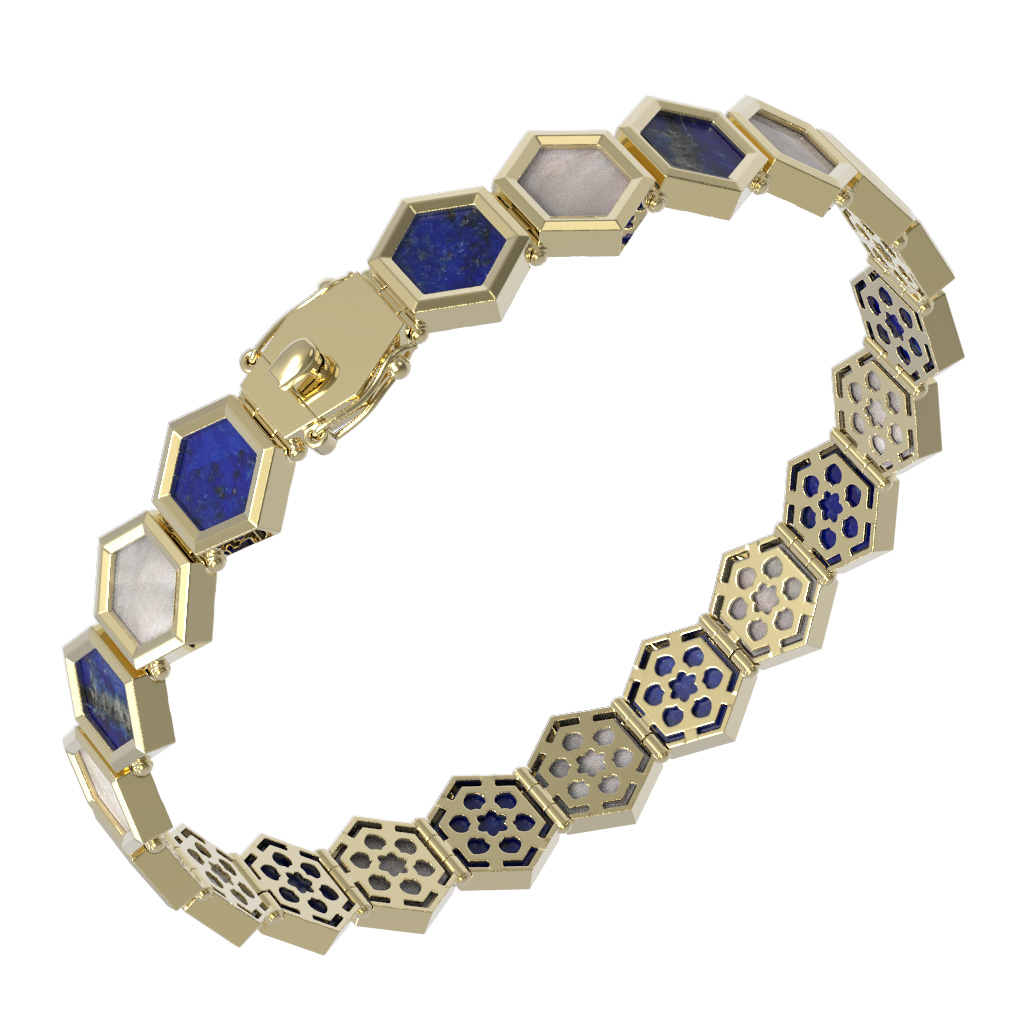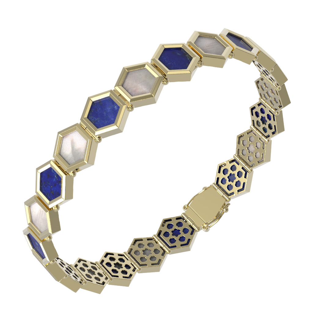 Браслет из лимонного золота 585 пробы c лазуритом и перламутром