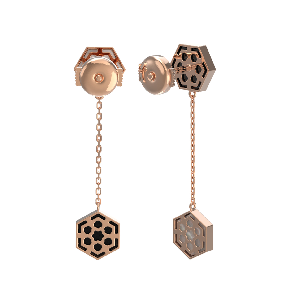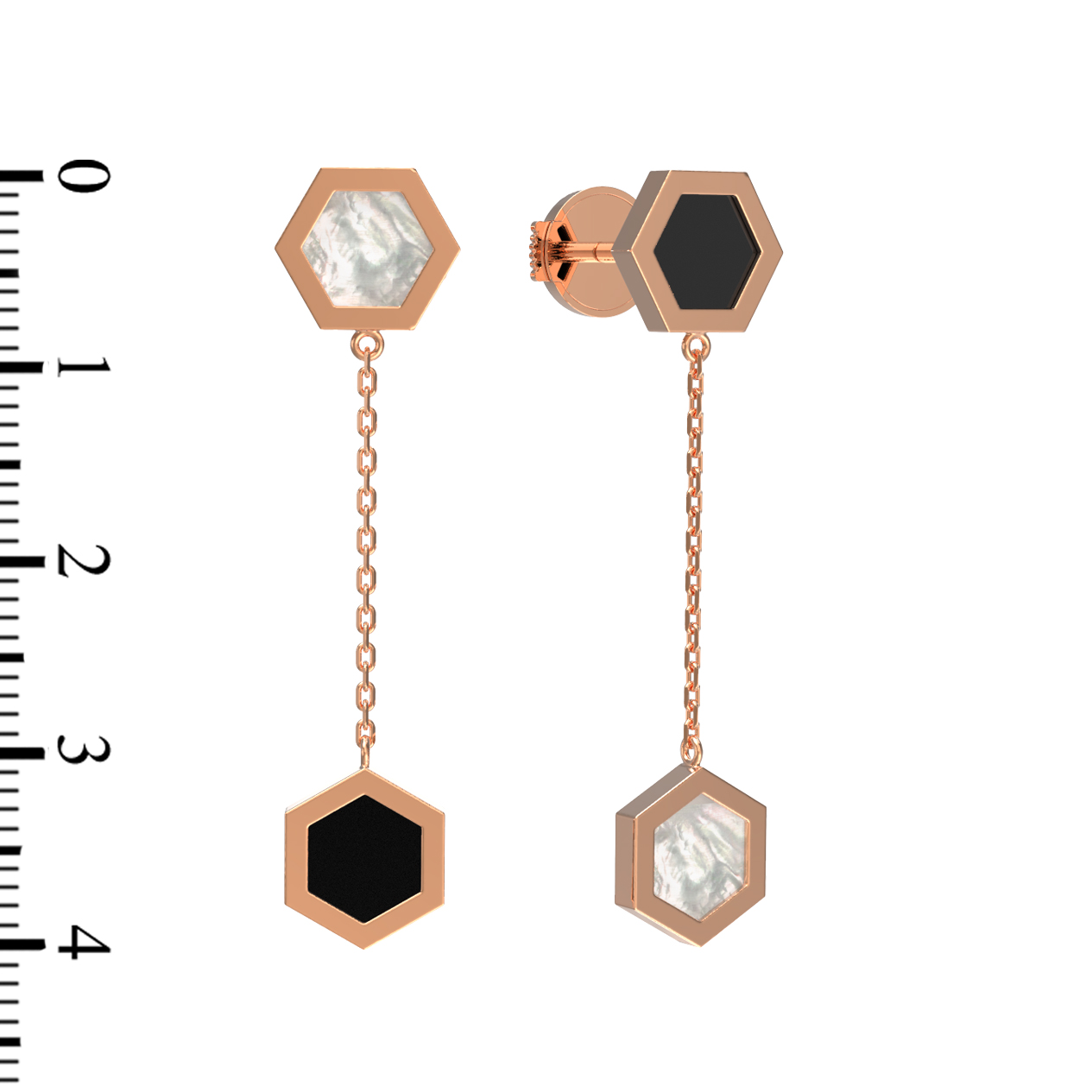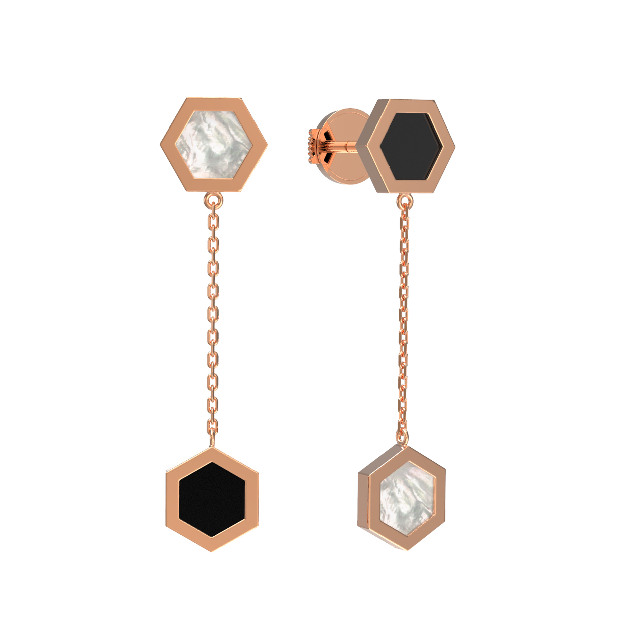 Серьги из красного золота 585 пробы c ониксом и перламутром