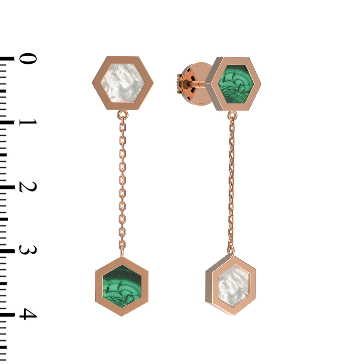 Серьги из красного золота 585 пробы c малахитом и перламутром