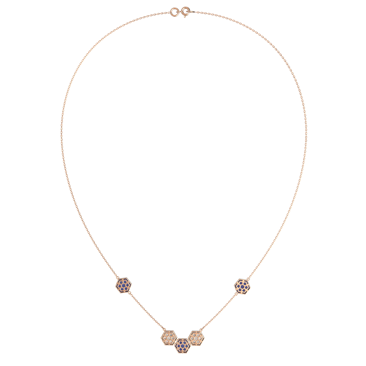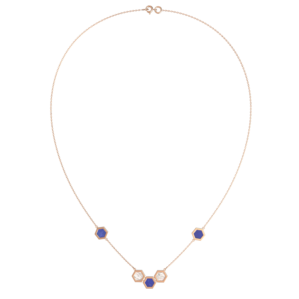 Колье из красного золота 585 пробы c лазуритом и перламутром