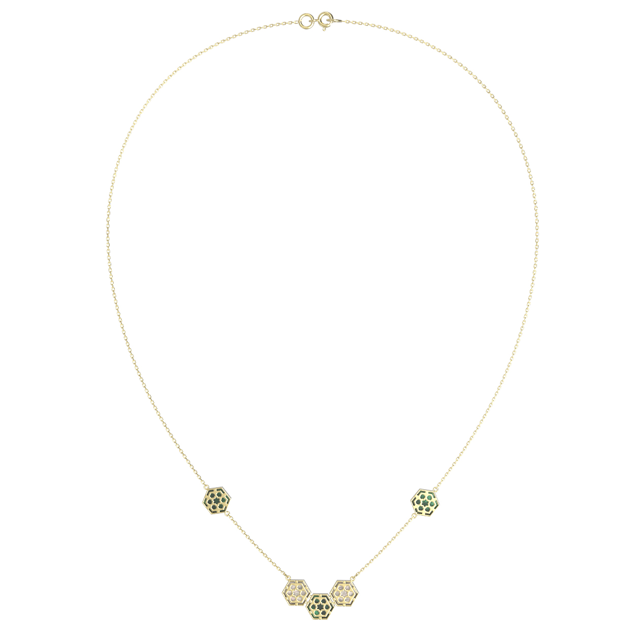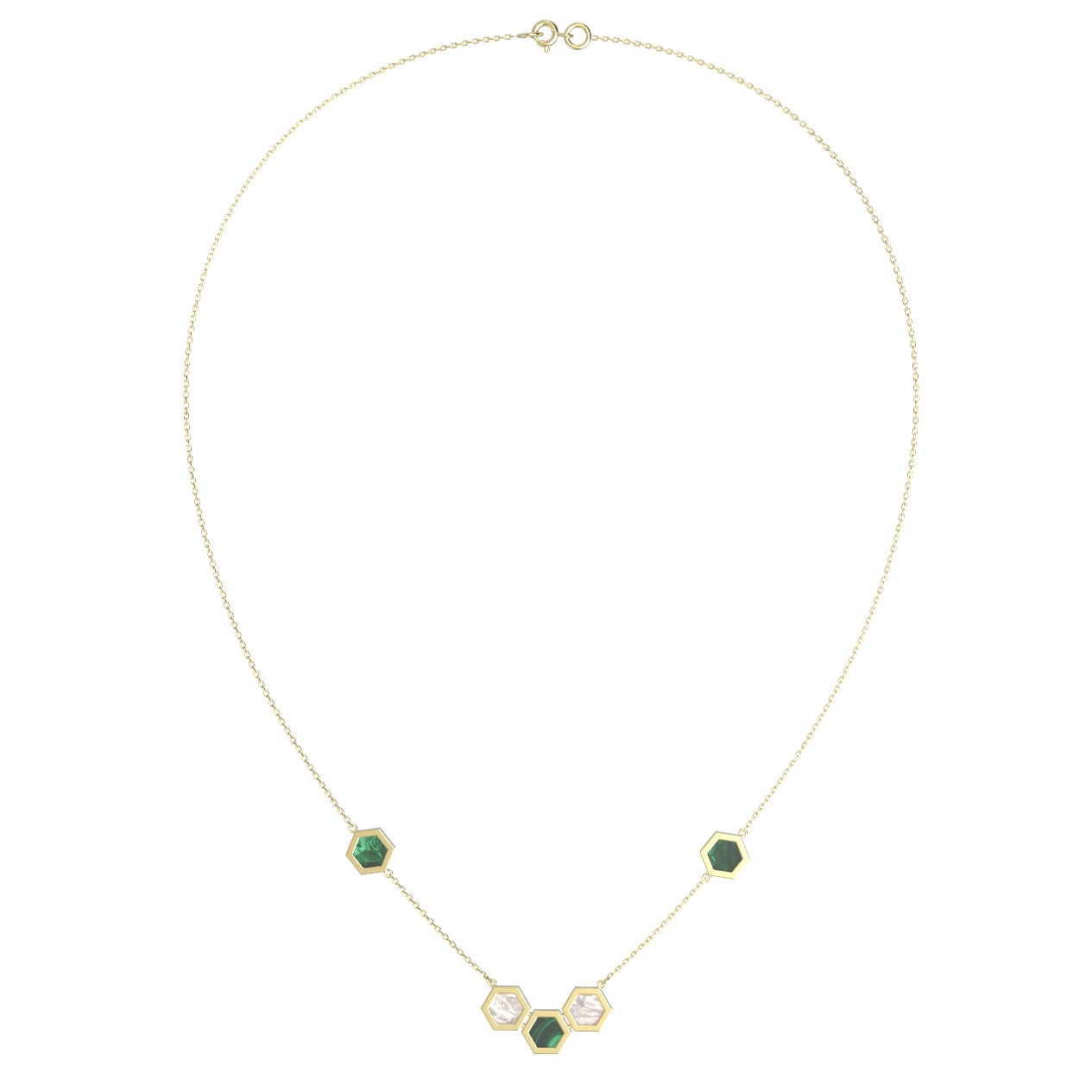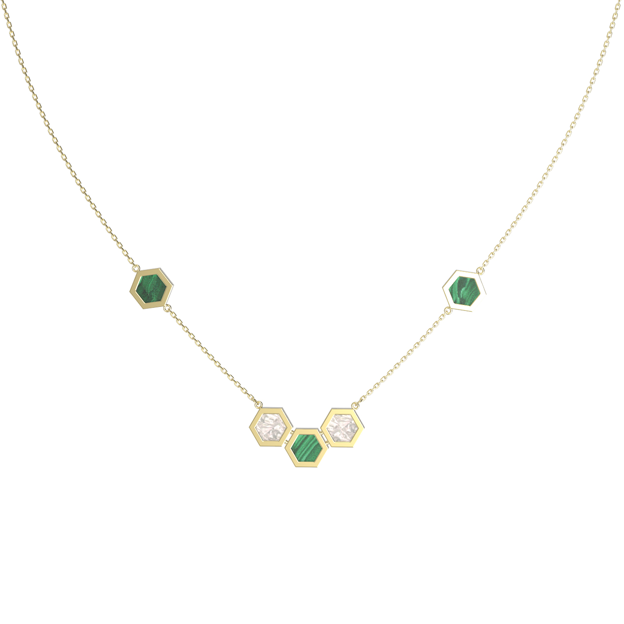 Колье из лимонного золота 585 пробы c малахитом и перламутром