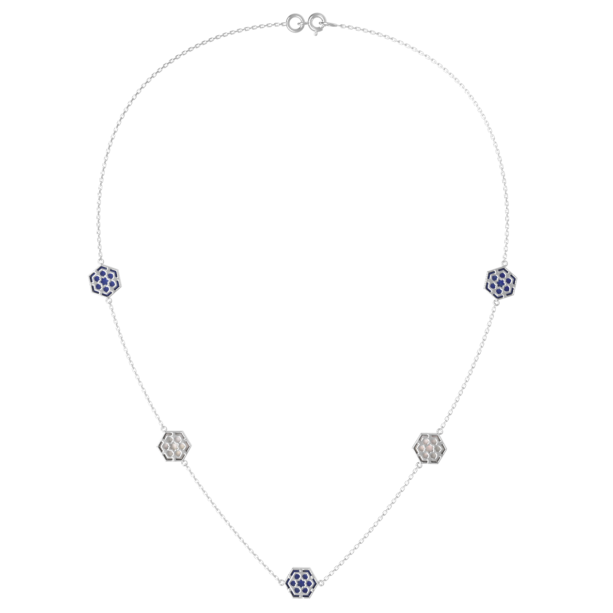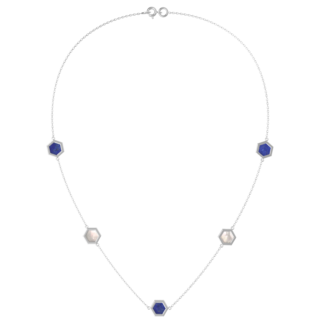 Колье из белого золота 585 пробы c лазуритом и перламутром