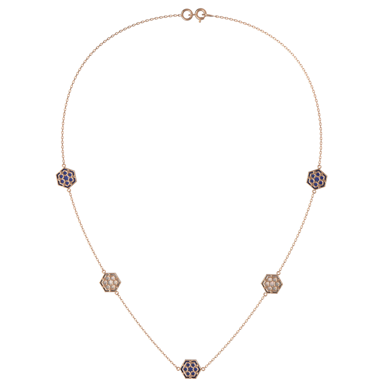 Колье из красного золота 585 пробы c лазуритом и перламутром