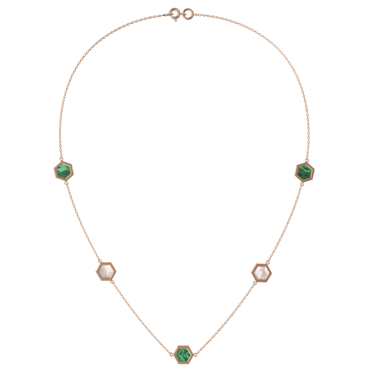 Колье из красного золота 585 пробы c малахитом и перламутром