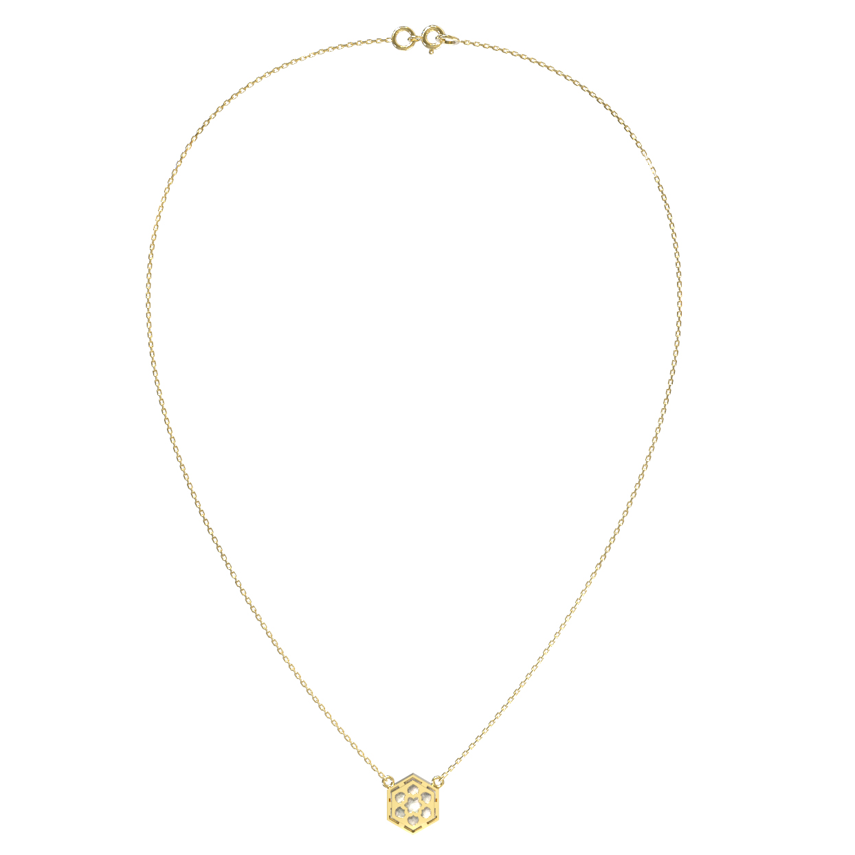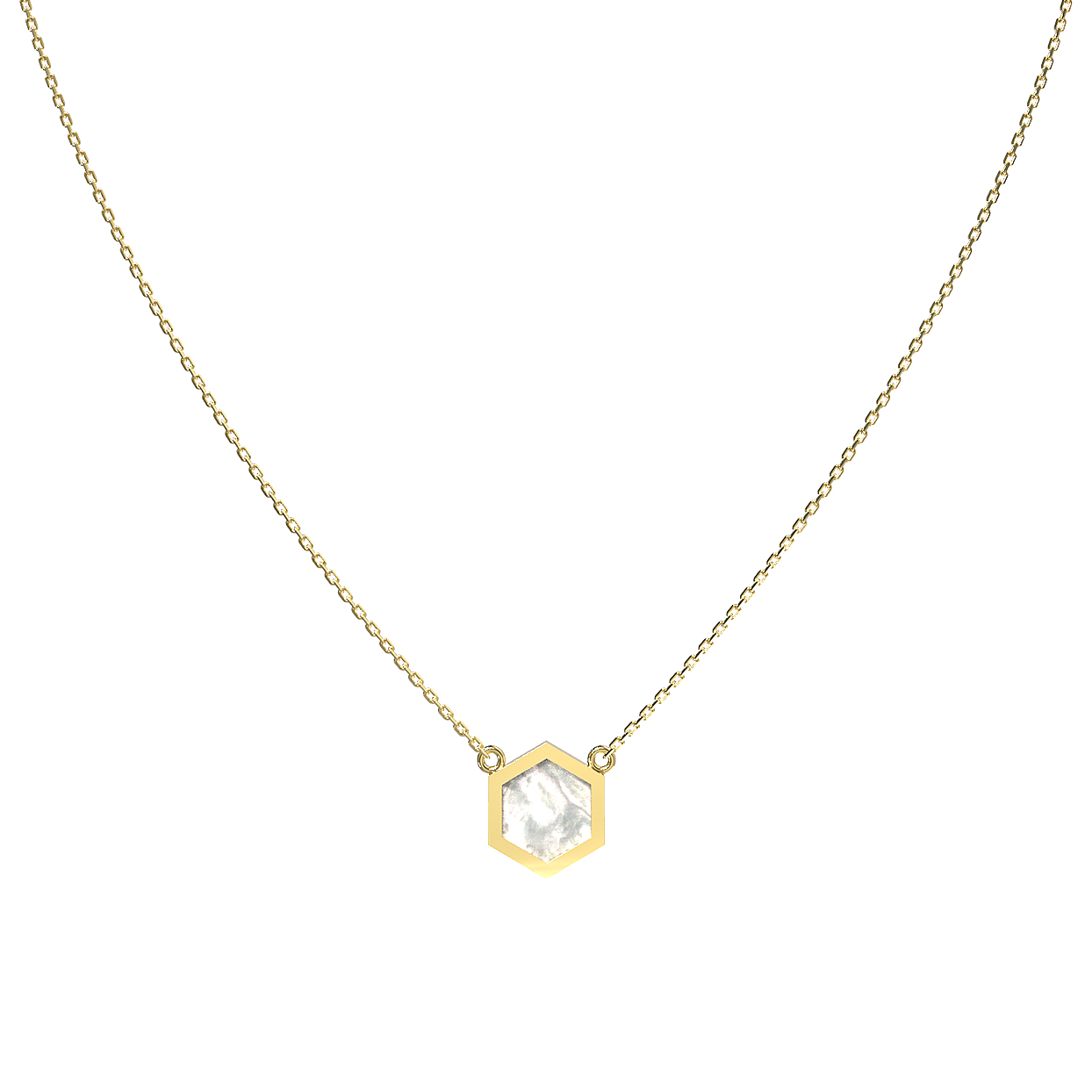 Элегантное колье из лимонного золота 585 пробы станет утонченным акцентом вашего образа. Дизайн украшения, вдохновленный концепцией молекулы, воплощает в себе гармонию строгих геометрических форм и природной мягкости. Центральным элементом ювелирного изделия выступает вставка из перламутра, выполненная в форме шестигранника. Нежное сияние перламутра идеально сочетается с теплым оттенком лимонного золота, создавая сбалансированную и притягательную композицию.