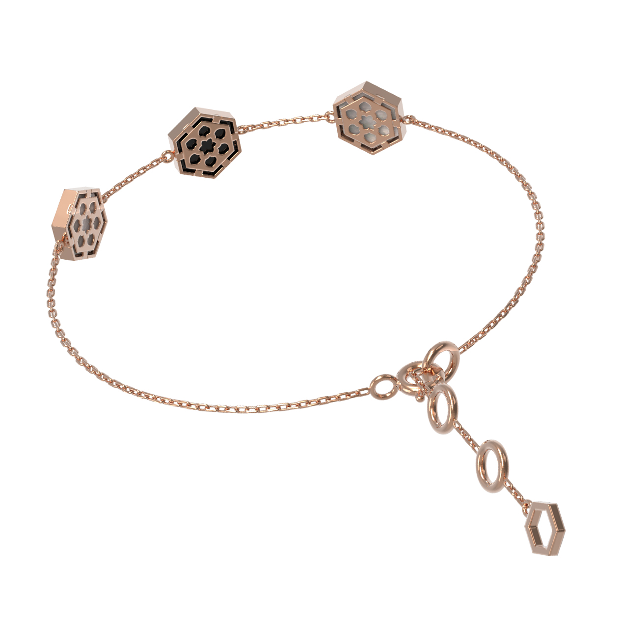 Выбирая браслет из красного золота с ониксом и перламутром, вы отдаете предпочтение украшению с уникальной геометрической эстетикой. Лаконичный дизайн-молекула идеально вписывается в современный гардероб, добавляя нотку статусности и утонченности. Это изделие создано для тех, кто ценит эстетику минимализма и высокое качество ювелирного мастерства.