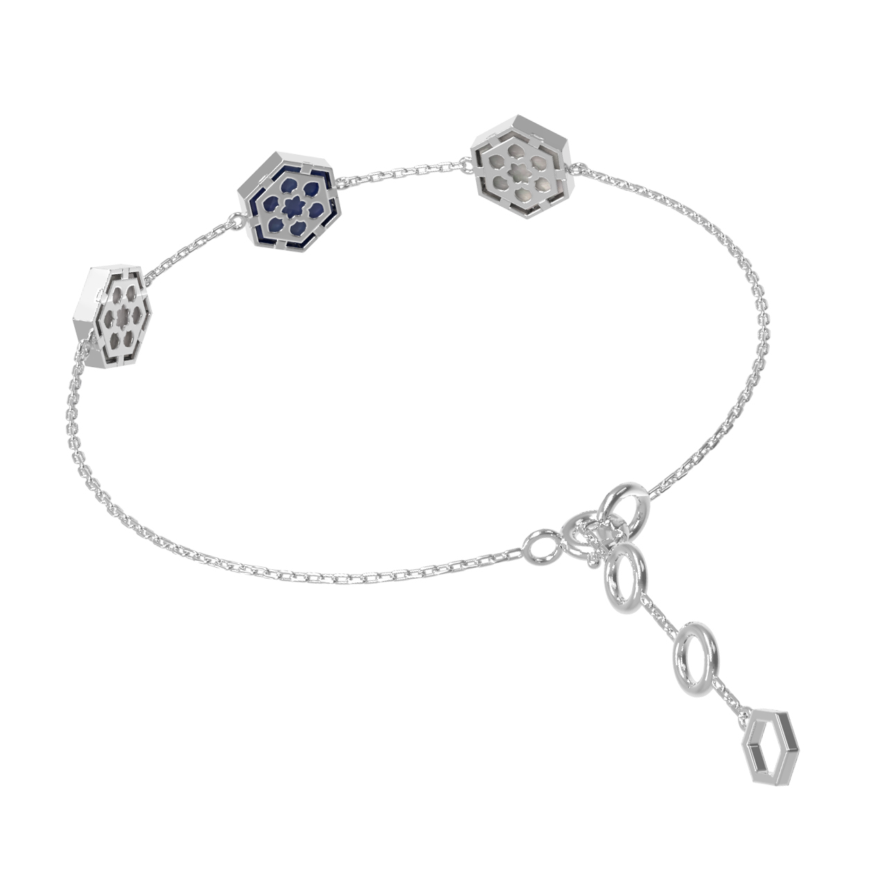 Браслет из серии De Luxe — Молекула станет достойным дополнением вашего повседневного или вечернего образа. Благодаря утонченному плетению цепочки изделие комфортно ощущается на руке, а надежная застежка обеспечивает уверенность при ношении. Данная модель также может стать частью комплекта, дополнив другие украшения из этой же линейки. Лазурит и перламутр в обрамлении белого золота — это классика, переосмысленная через призму современной эстетики. Выбирая такой аксессуар, вы делаете ставку на качество, лаконичный дизайн и сдержанную роскошь.