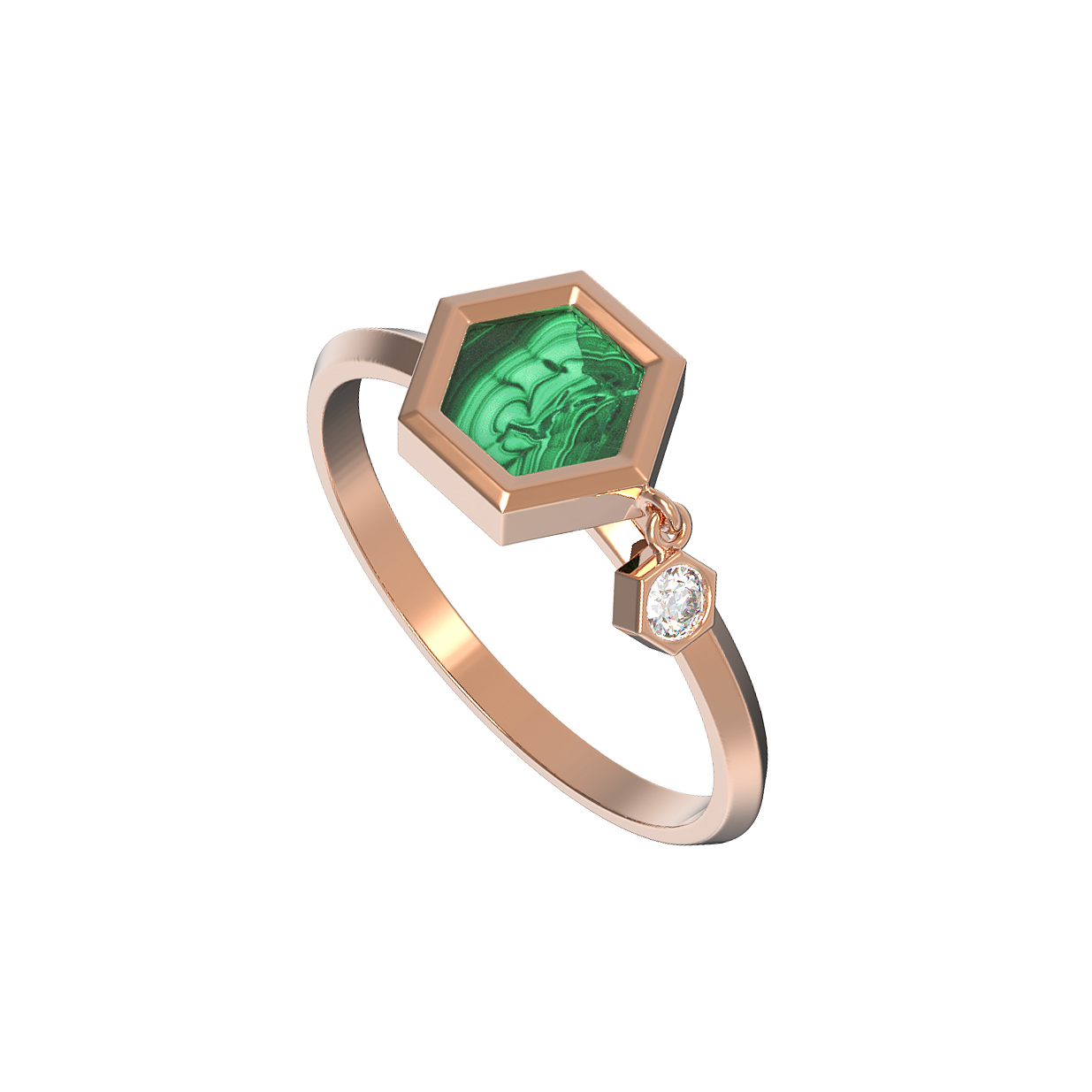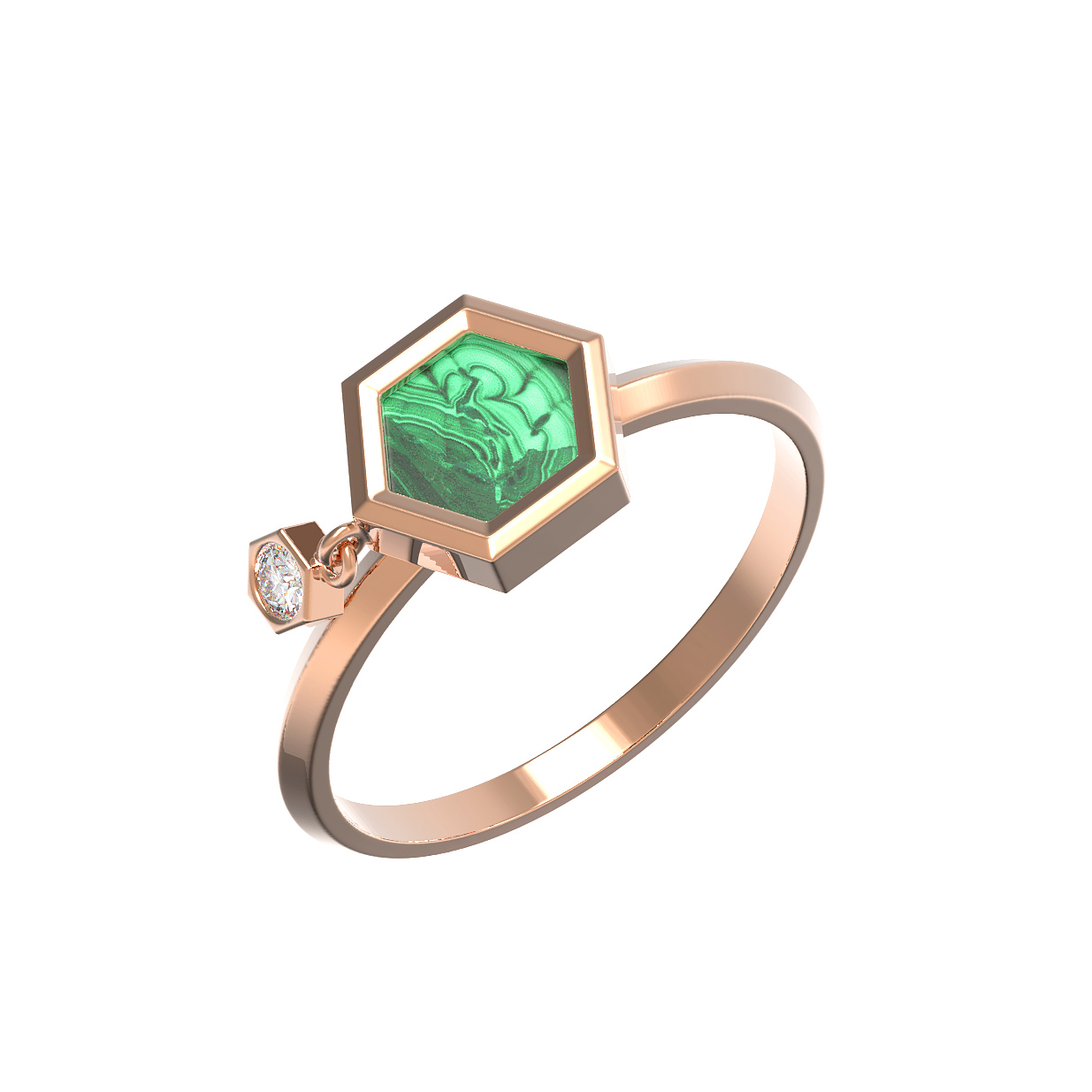 Кольцо из красного золота 585 пробы c бриллиантами и малахитом