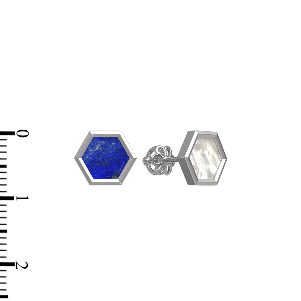 Серьги из белого золота 585 пробы c лазуритом и перламутром
