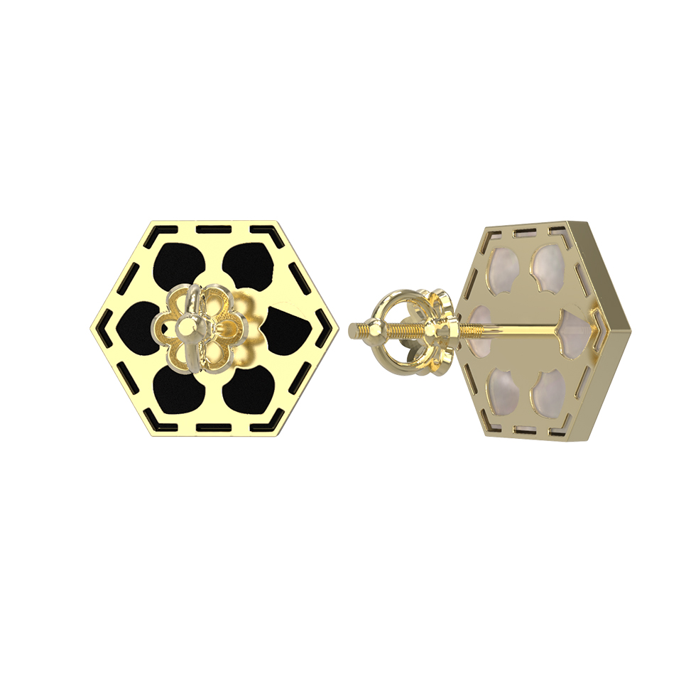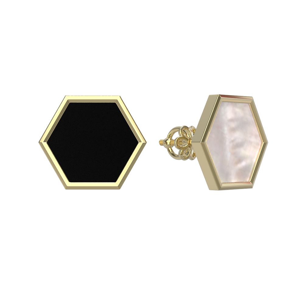 Серьги из лимонного золота 585 пробы c ониксом и перламутром