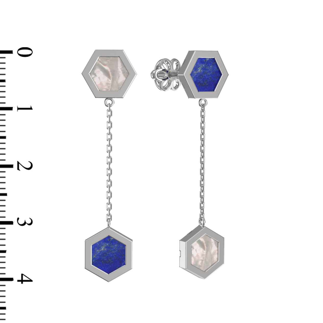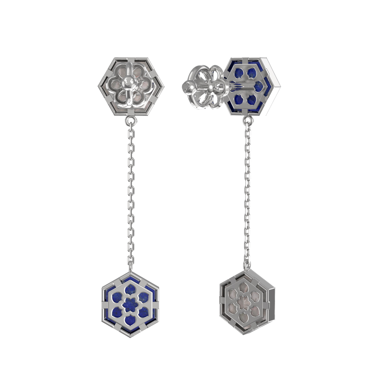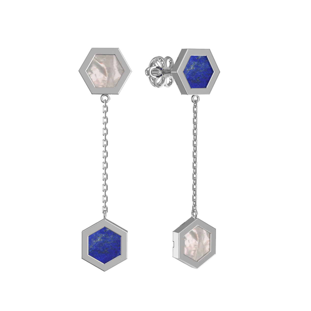 Серьги из белого золота 585 пробы c лазуритом и перламутром