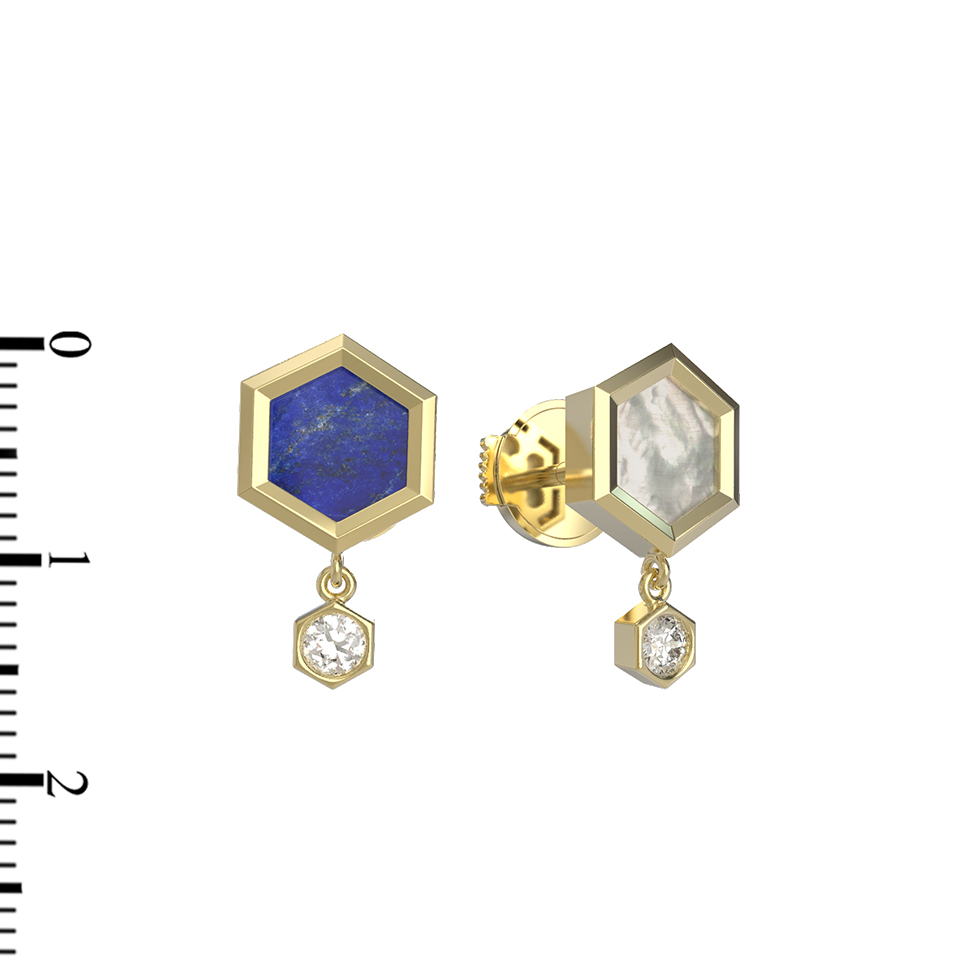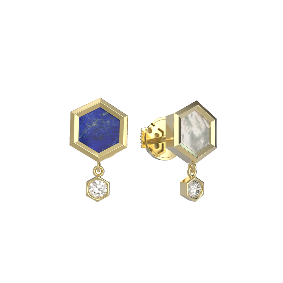 Серьги из лимонного золота c бриллиантами, лазуритом и перламутром