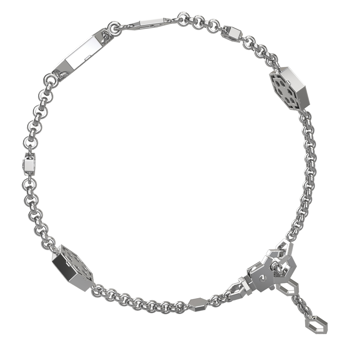 Откройте для себя оригинальное сочетание геометрии и благородных материалов в браслете из коллекции De Luxe — Молекула. Это украшение, выполненное из белого золота 585 пробы, воплощает современный взгляд на ювелирное искусство. Центральный элемент дизайна — молекула — подчеркивает стремление к нестандартным формам, а сочетание вставок круглой и шестигранной огранки делает изделие по-настоящему запоминающимся.