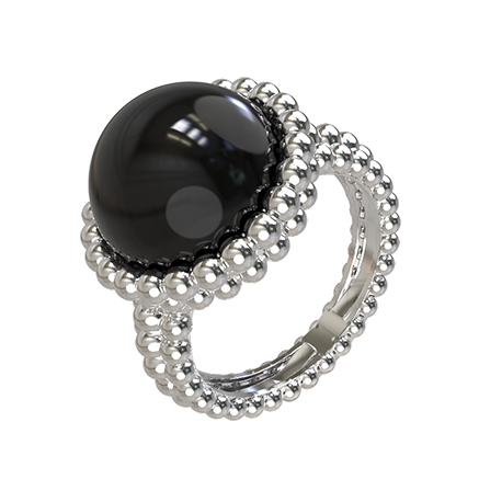 Кольцо из белого золота 585 пробы c ониксом