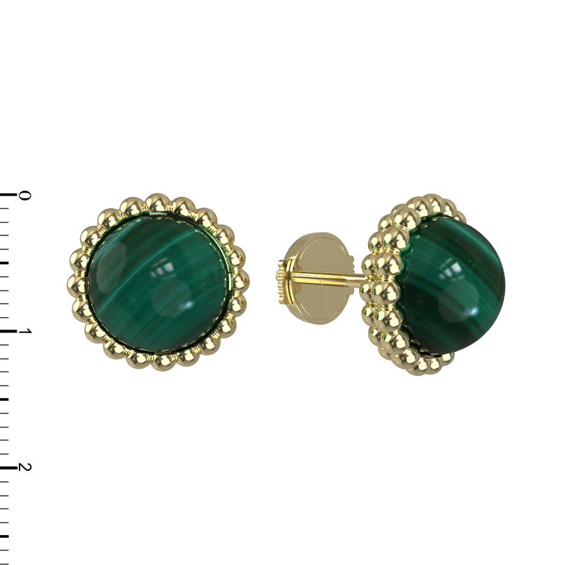 Комплект состоит из двух вставок круглой формы, которые обеспечивают идеальный визуальный баланс. Эти серьги станут достойным подарком для женщин и мужчин, предпочитающих украшения с характером. Изделие прекрасно сочетается с другими ювелирными аксессуарами, что позволяет с легкостью собирать стильные комплекты. Выбирая данные серьги из лимонного золота с малахитом, вы делаете ставку на качество исполнения и эстетику, проверенную временем.