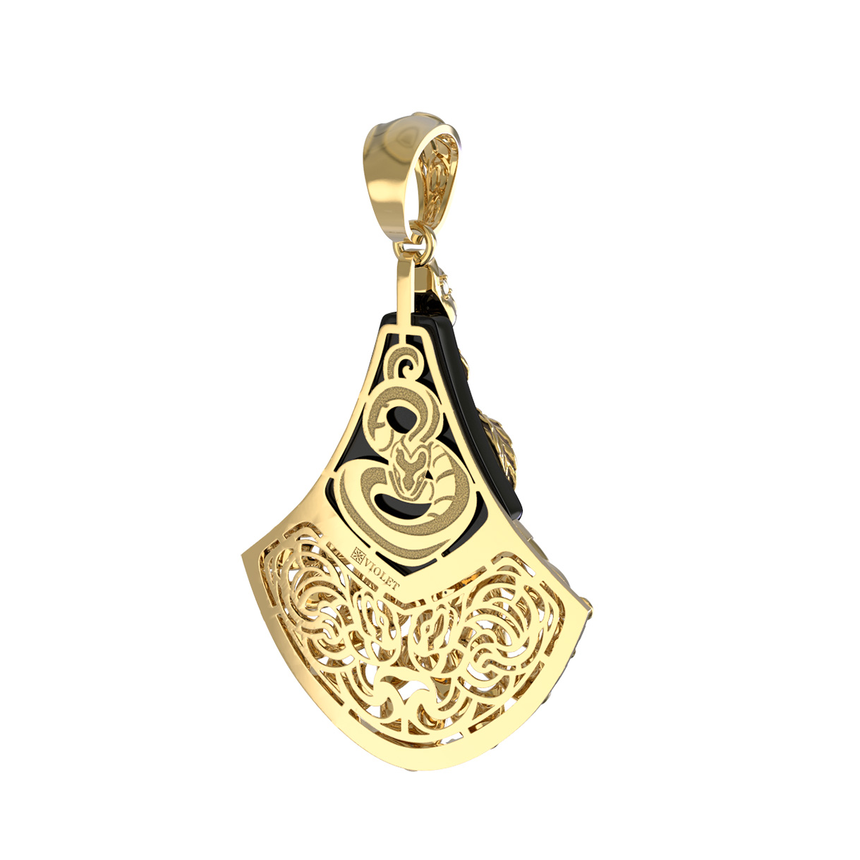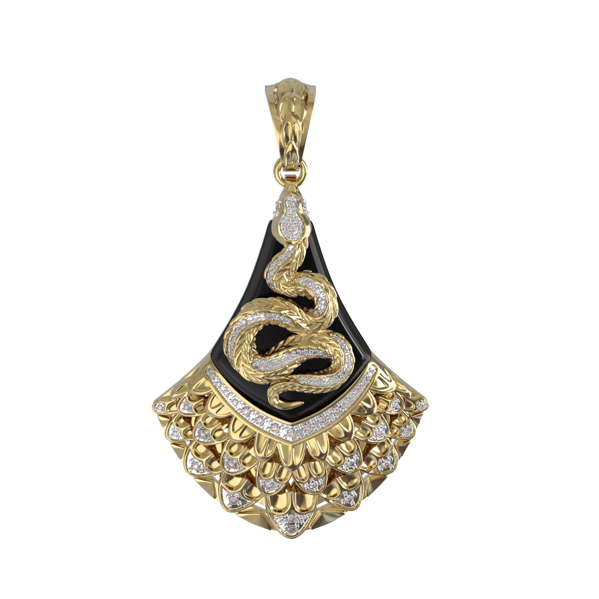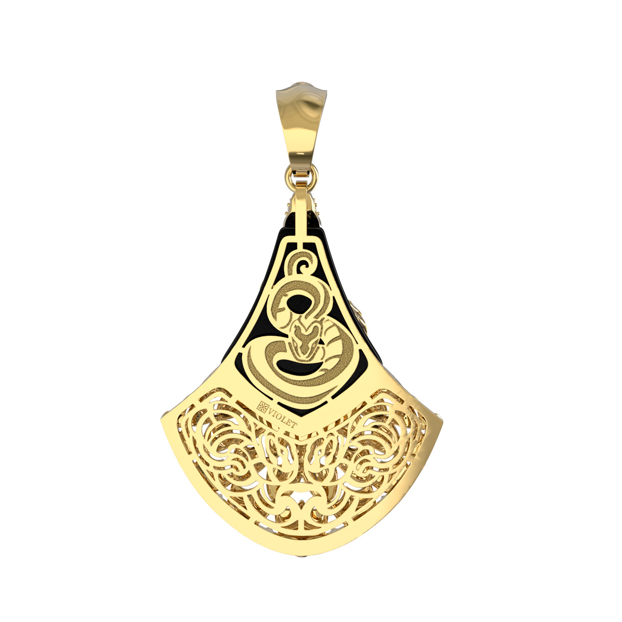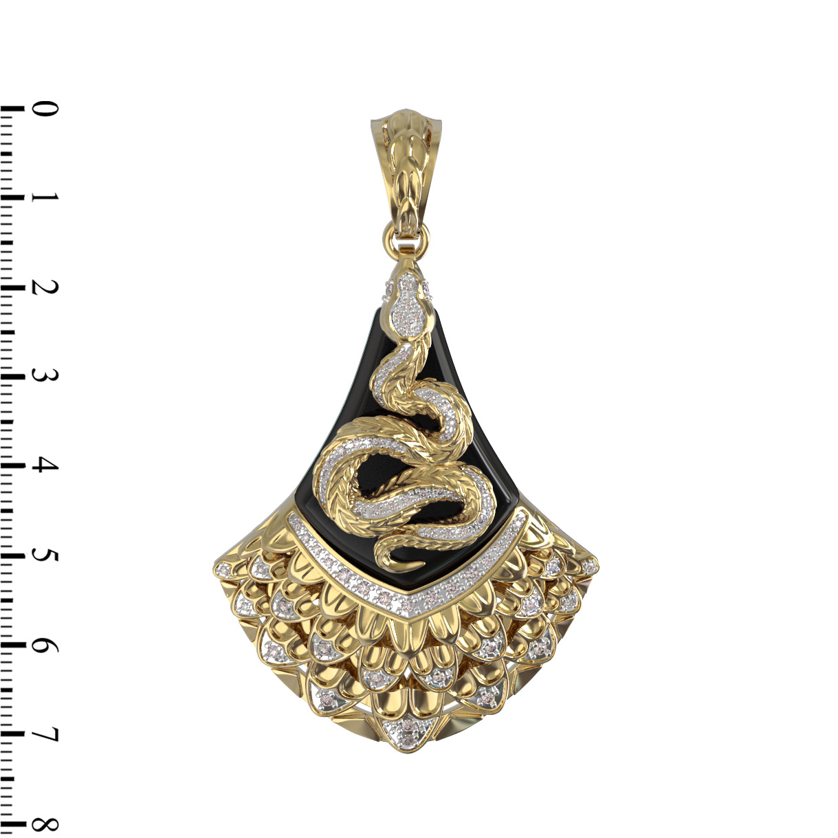 Подвеска из лимонного золота 585 пробы c бриллиантами и ониксом