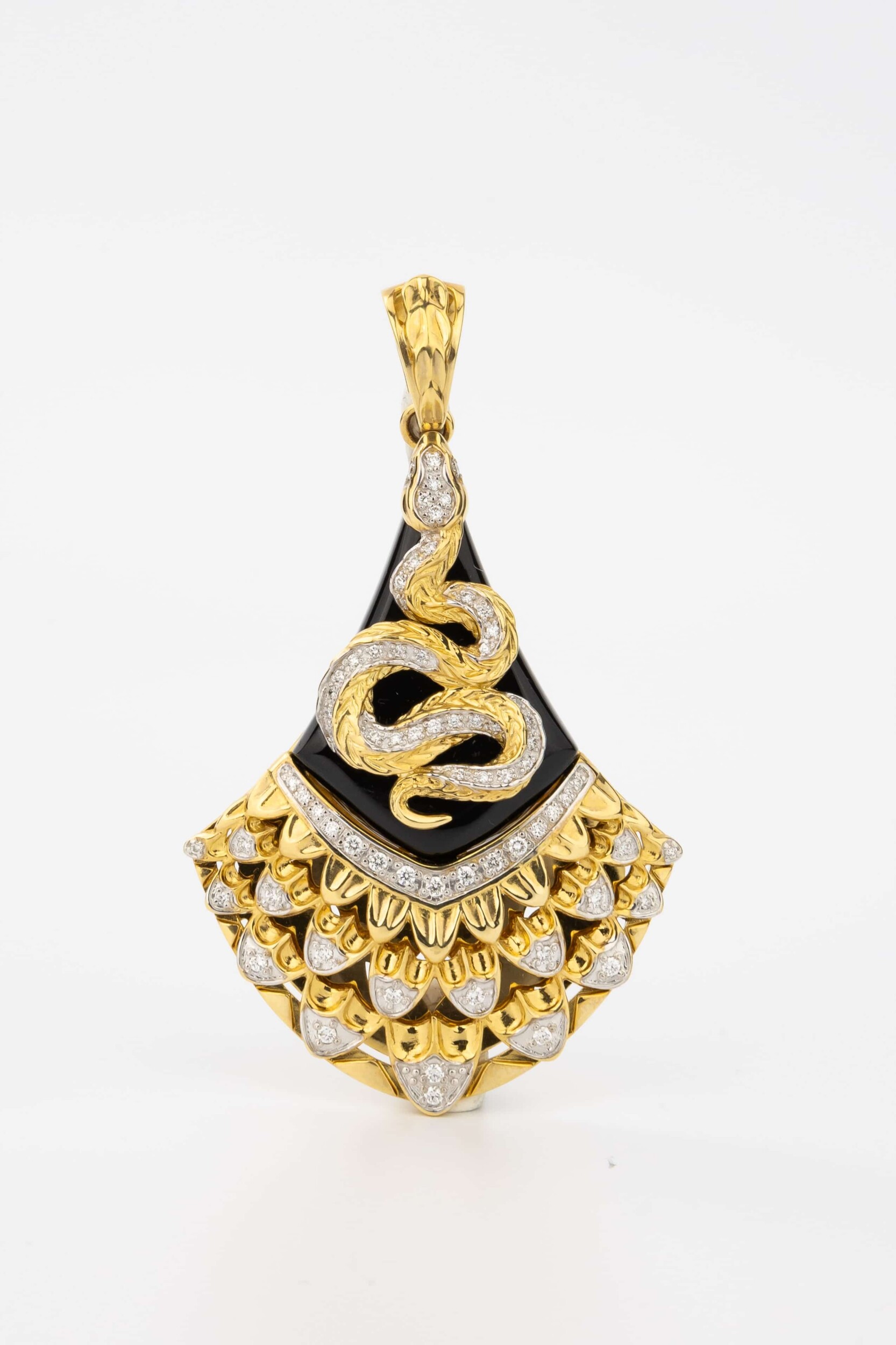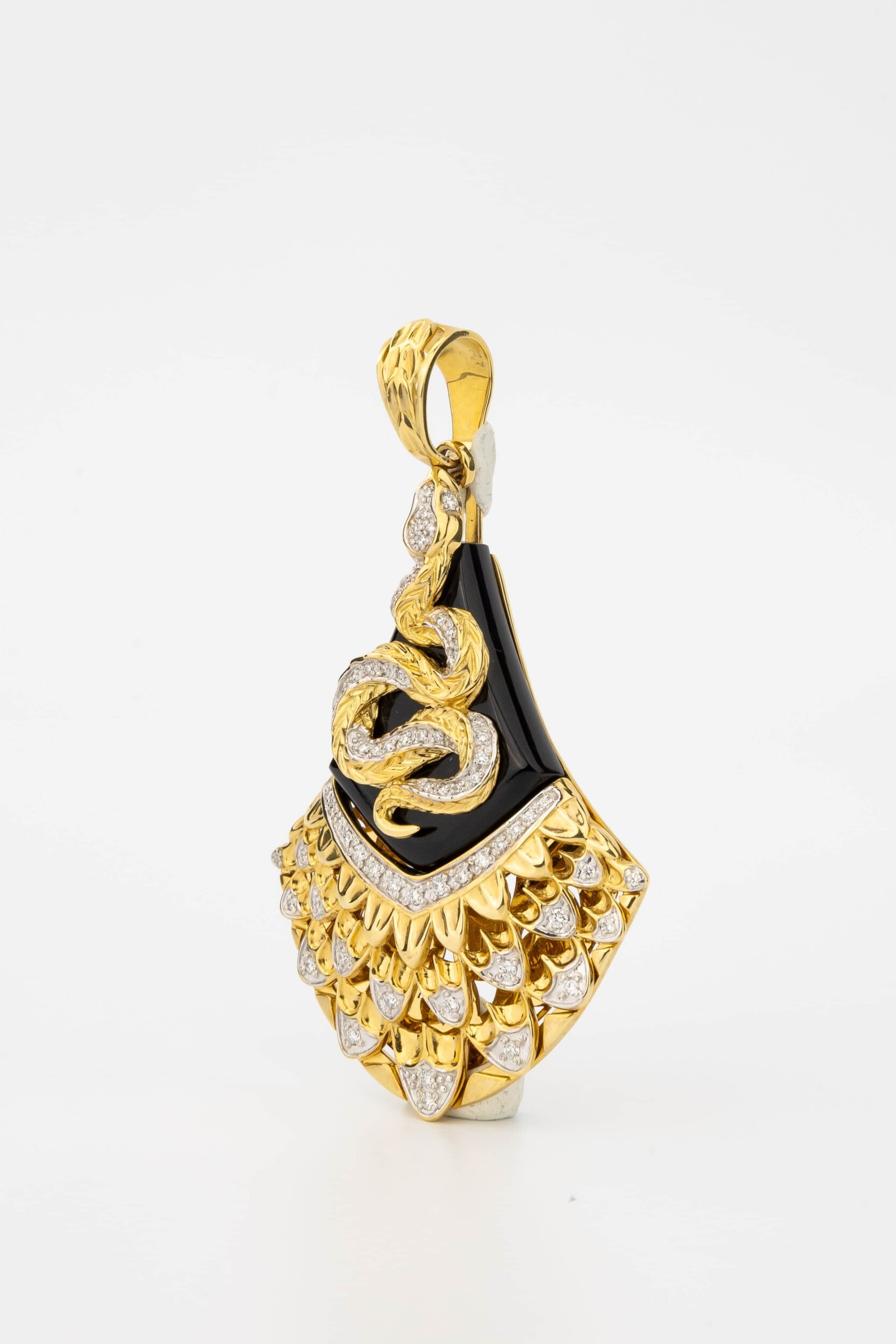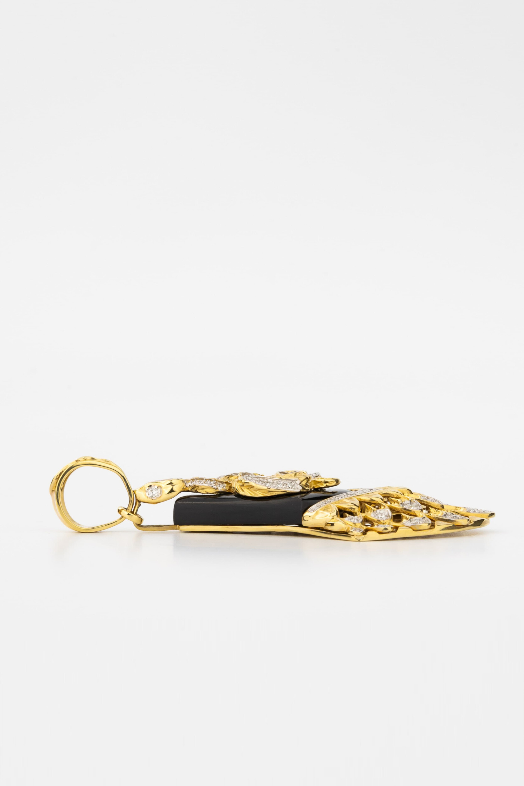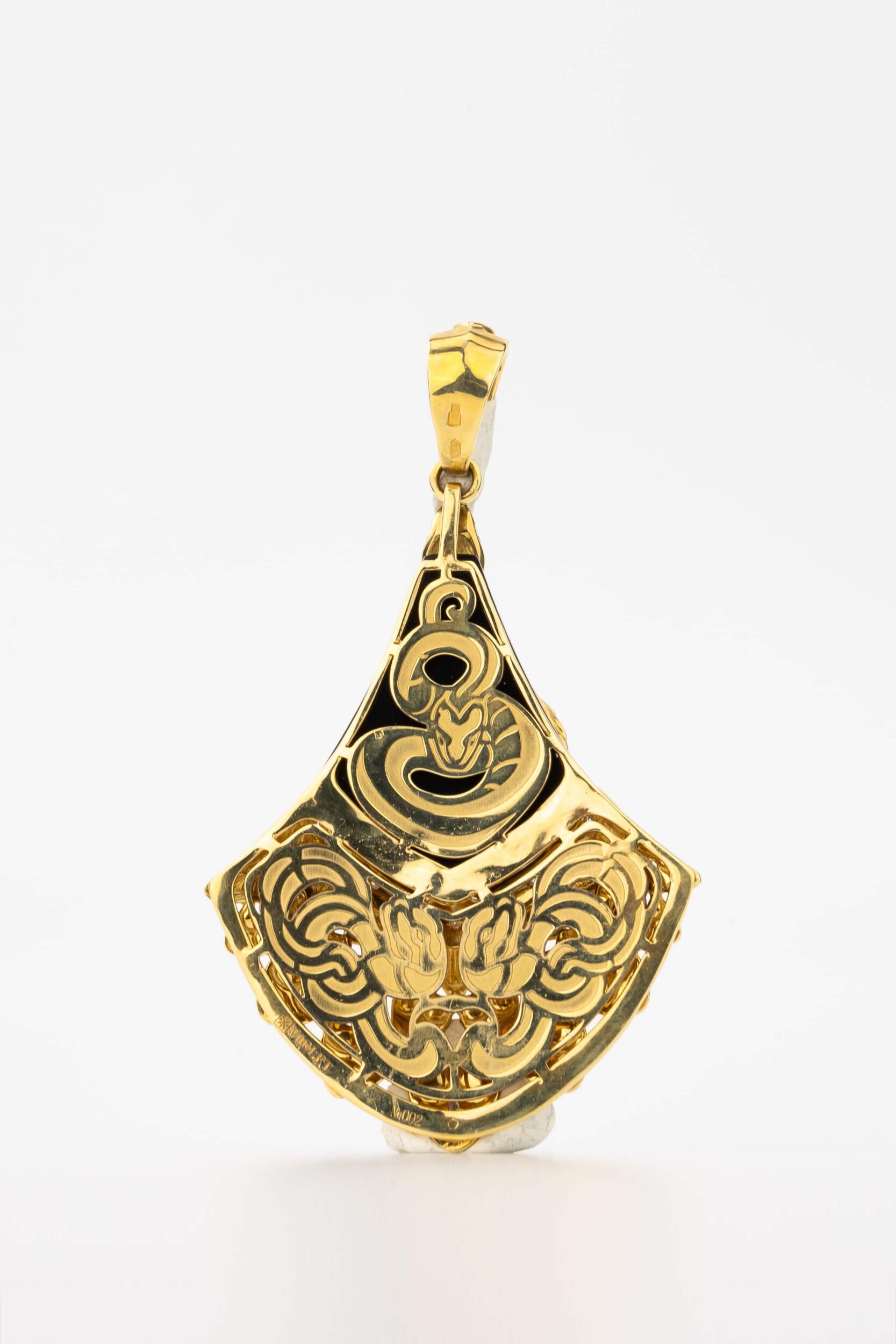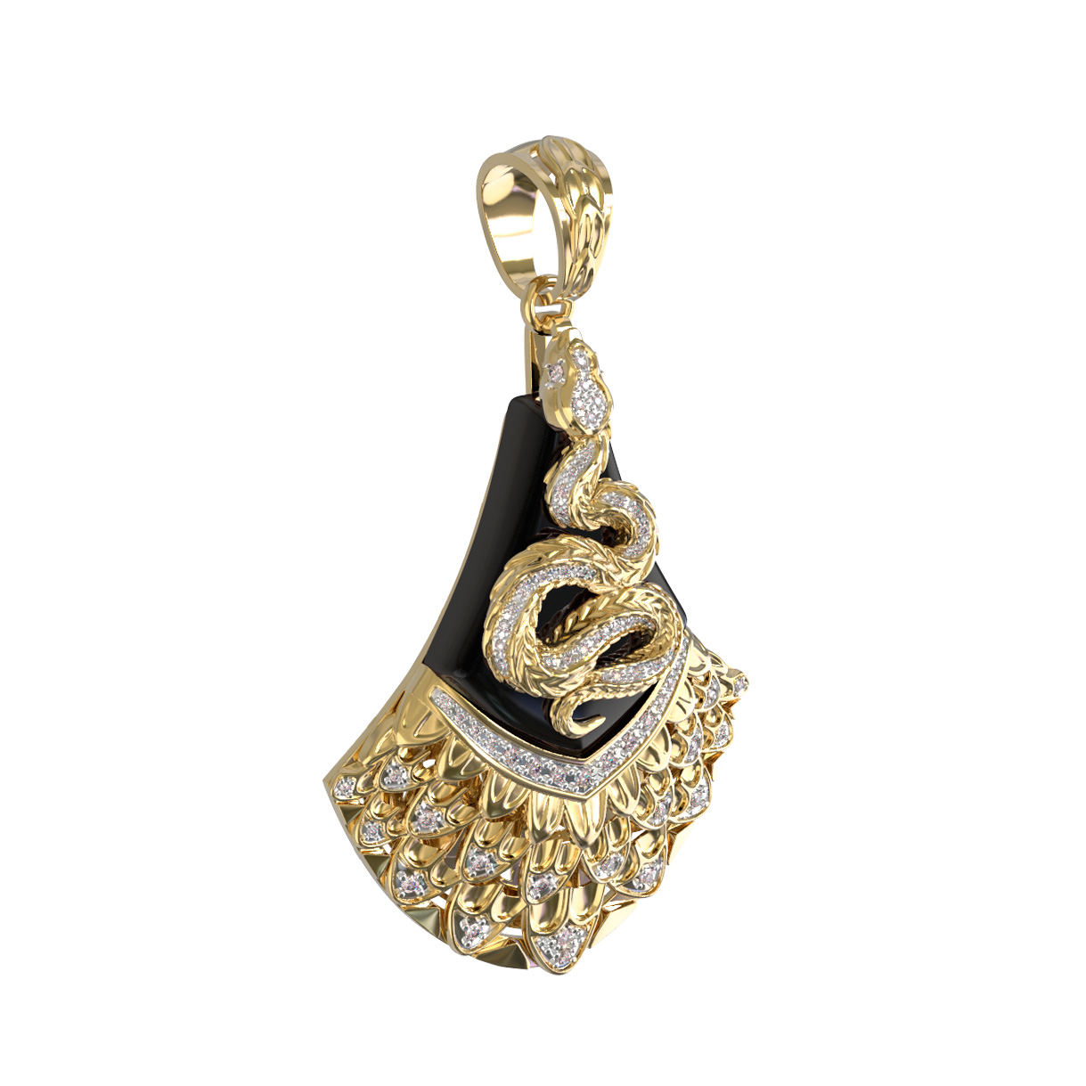 Подвеска из лимонного золота 585 пробы c бриллиантами и ониксом